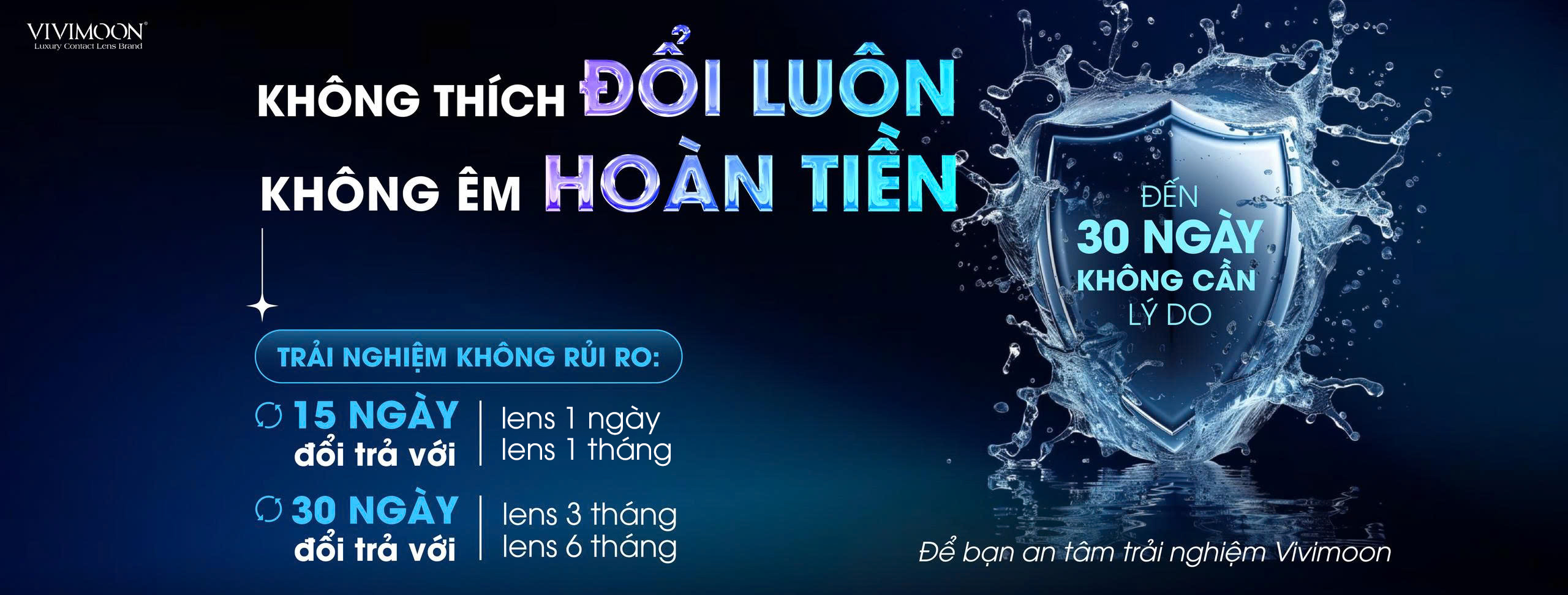 - Về mặt khoa học, màng nước mắt tự nhiên của mắt có vai trò quan trọng trong việc duy trì độ ẩm và bảo vệ giác mạc. Lens 1 ngày VIVIMOON có lớp phủ MPC giúp giữ nước trên bề mặt lens, làm chậm quá trình bay hơi nhưng không thể thay thế hoàn toàn vai trò của màng nước mắt tự nhiên của mắt. Do đó, việc nhỏ mắt đều đặn sẽ giúp mắt duy trì độ ẩm tự nhiên, hỗ trợ cảm giác đeo êm ái và an toàn suốt cả ngày.