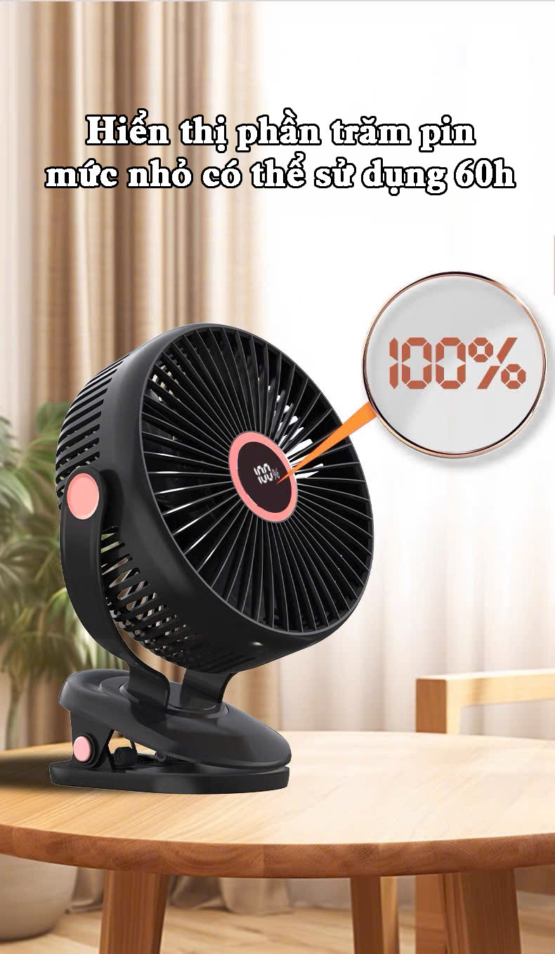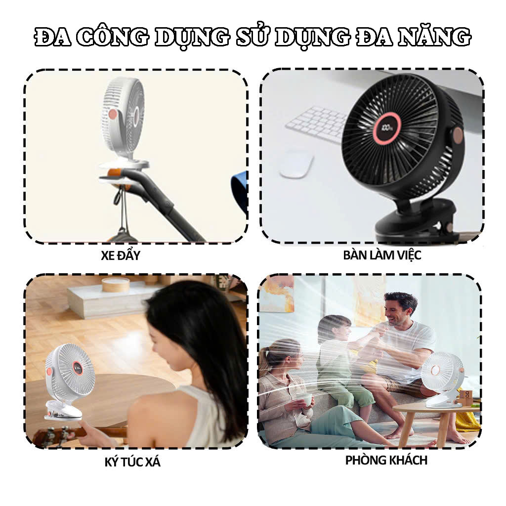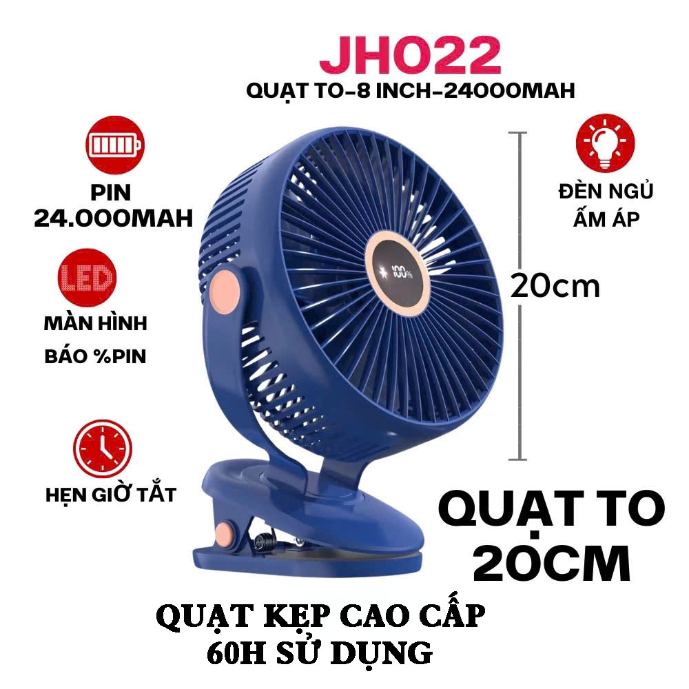[25000mMAH] Quạt Tích Điện Kẹp LOẠI TO Q28 - JH-022, Hiện thị %pin, Lồng quạt 20cm - BẢO HÀNH 24 THÁNG
