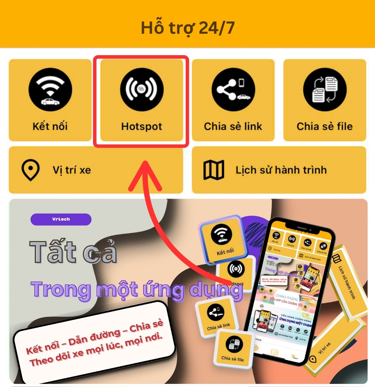 🔹 Vào app → Nhấn “Hotspot” → bật lên