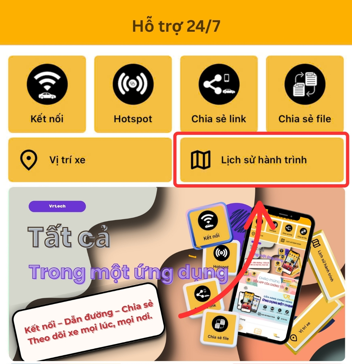 🔹 Vào “Lịch sử hành trình” → Chọn ngày → Xem lại toàn bộ lộ trình, điểm dừng, quãng đường
