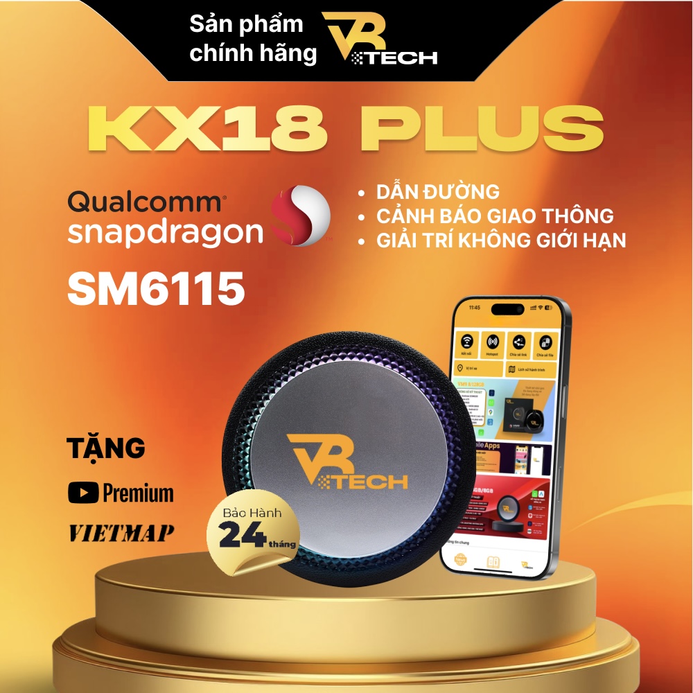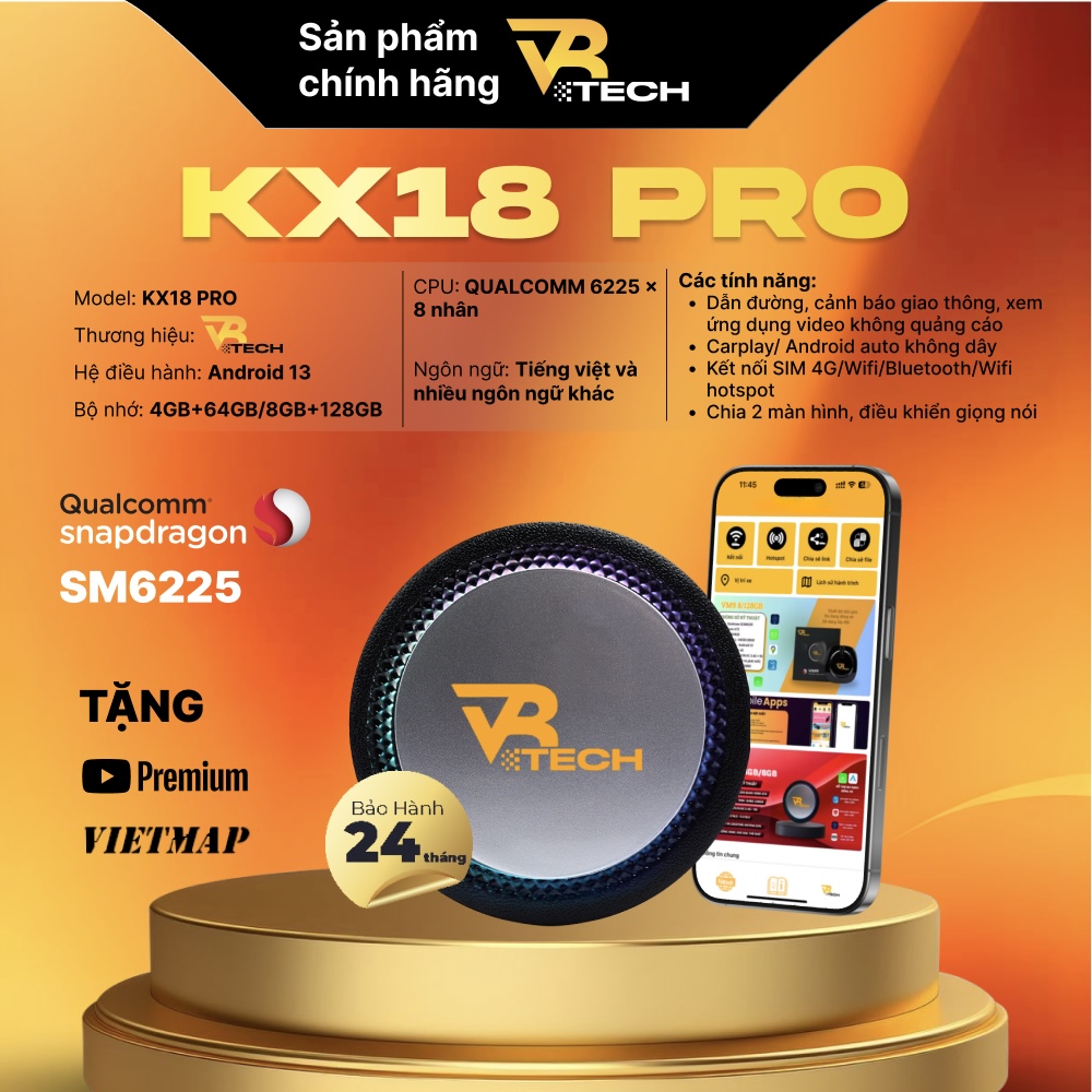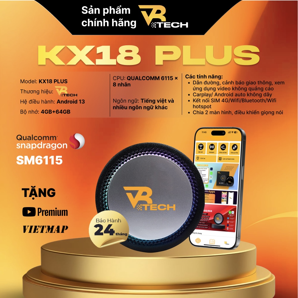 Android Box Ô Tô 2026 Chính Hãng VRTECH KX-18 Plus & Pro 2025 Chính Hãng, 2 Phiên Bản CPU 8 Nhân QCM6115,QCM6225,Carplay