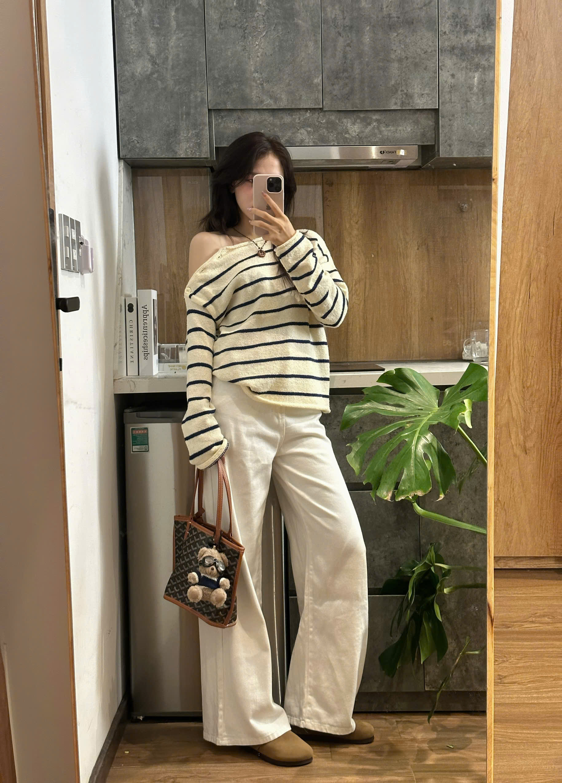 (ẢNH OLDSCHOOL) Quần jeans TRẮNG ỐNG LOE form rộng dài chùm phủ chân Q7767