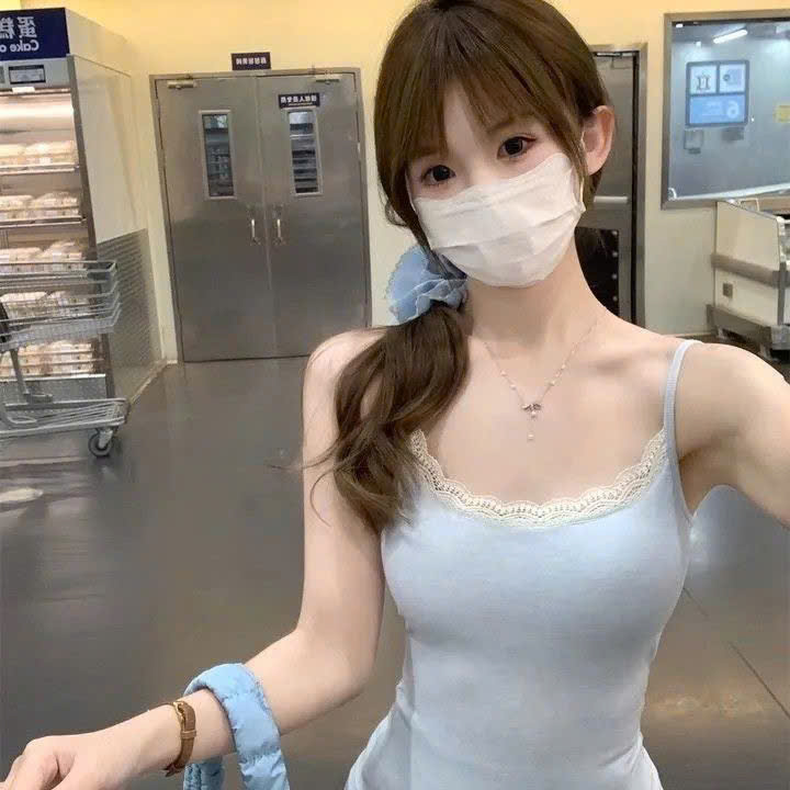 Áo 2 Dây Cotton CÓ ĐỆM MÚT NGỰC Không Gọng, Áo Croptop Dệt Kim Cổ Tròn Trơn Phối Ren Hàng Qccc Shopquacam