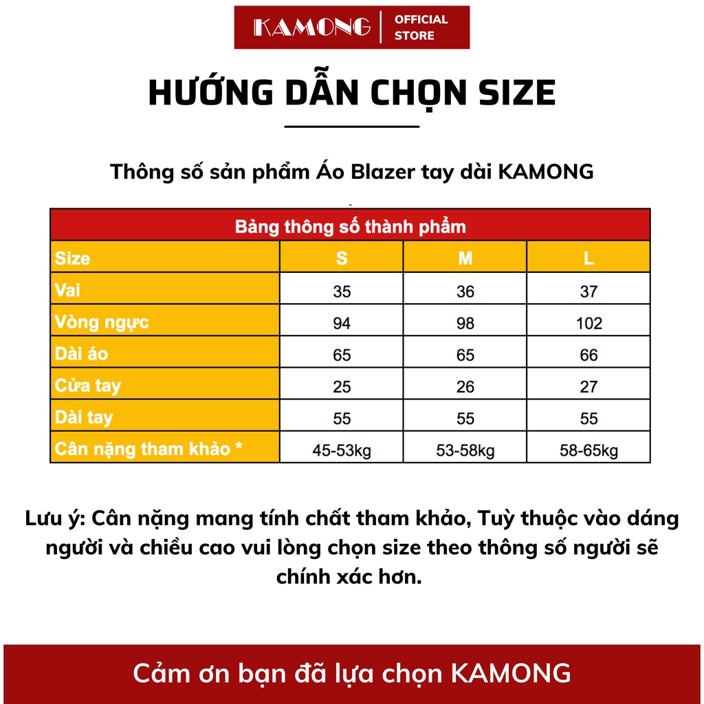 -Kiểu dáng : Dáng áo Blazer tay dài suông.