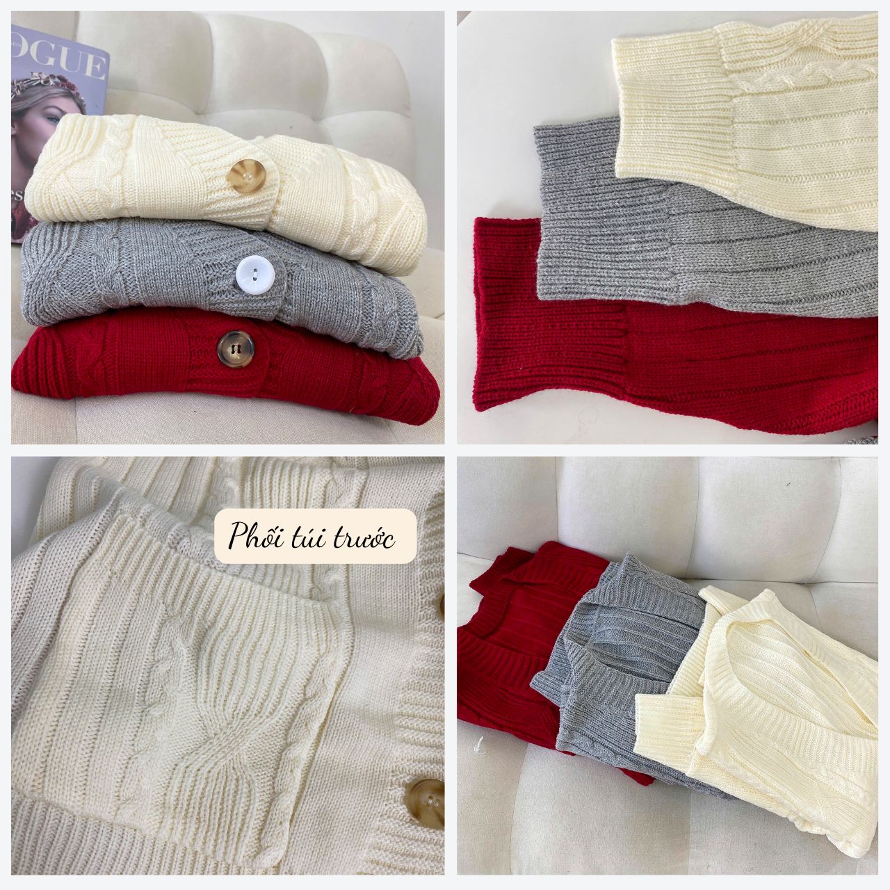 Áo Khoác Cardigan Len Thừng Phối Túi Trước Chất Len Dày Phong Cách Hàn Quốc, Labibi