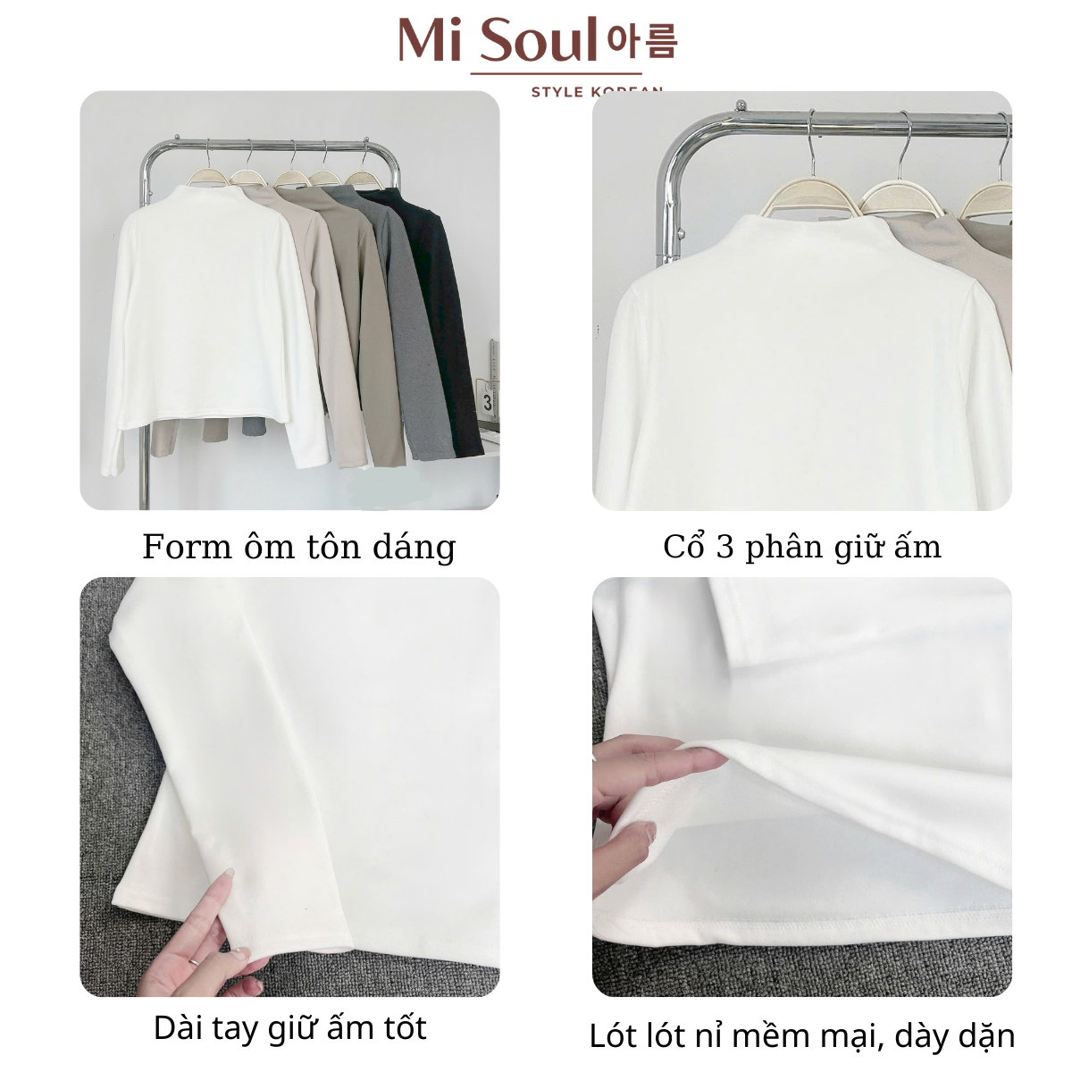Áo Giữ Nhiệt Lót Nỉ Lông BigSize Trơn Cổ 3 Phân Dài Tay MiSoul , Áo Giữ Nhiệt Dài Tay MiSoul BigSize 237