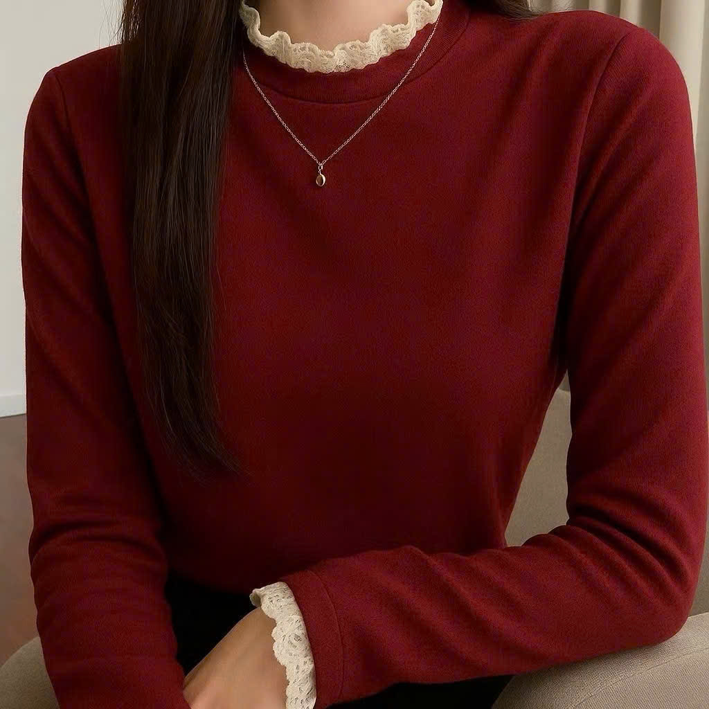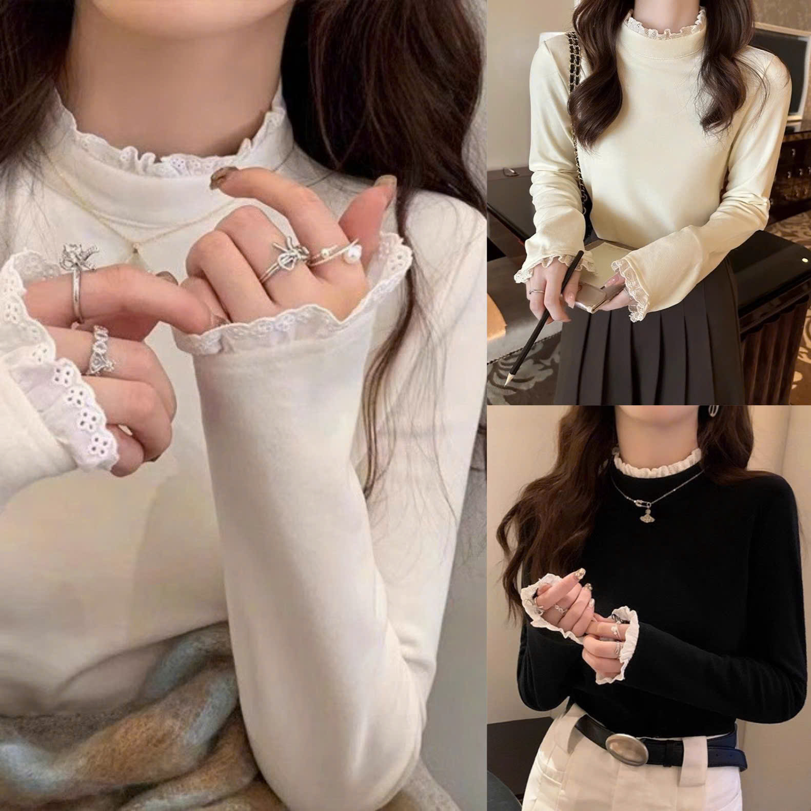 + Tên sản phẩm : Áo giữ nhiệt nữ phối ren điệu đà áo thun nữ cổ tròn dài tay nhiều màu basic phong cách Hàn Quốc A444 PANOSI
