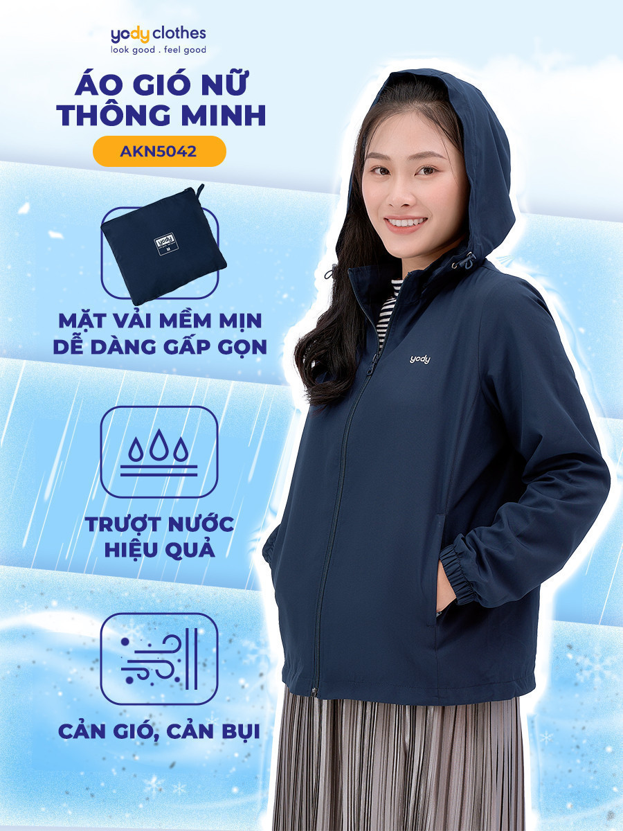 Áo khoác gió nữ YODY thông minh dễ gấp gọn cản gió, chống thấm, cản bụi AKN5042