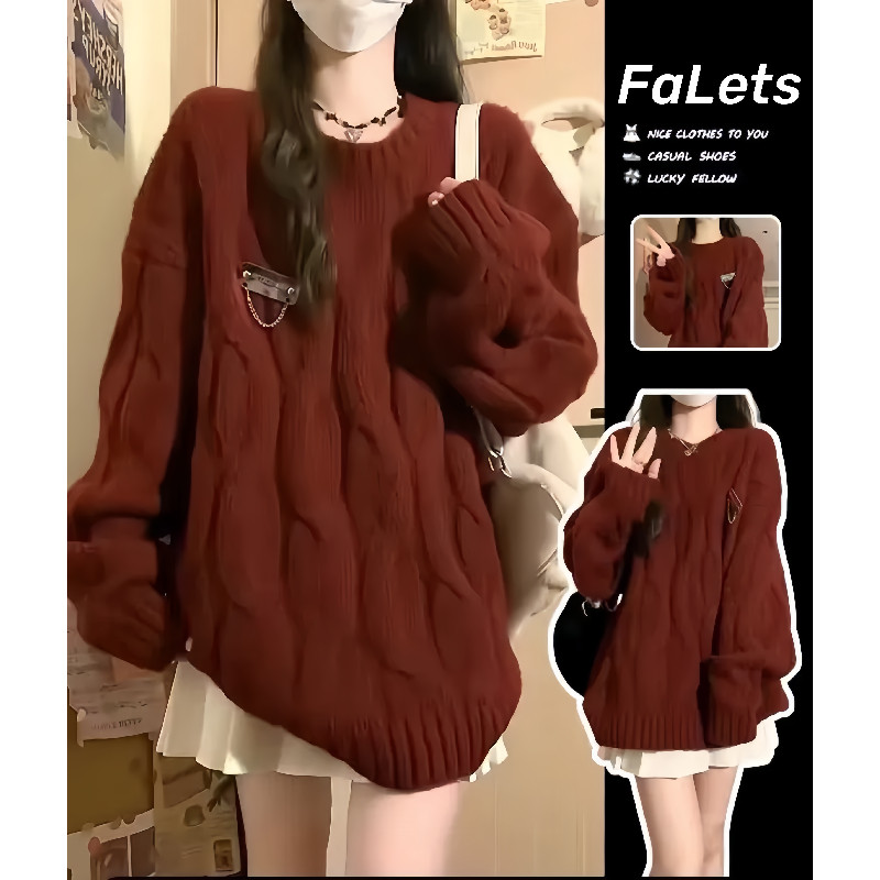 Áo len đỏ giáng sinh tết thu đông dệt kim nữ