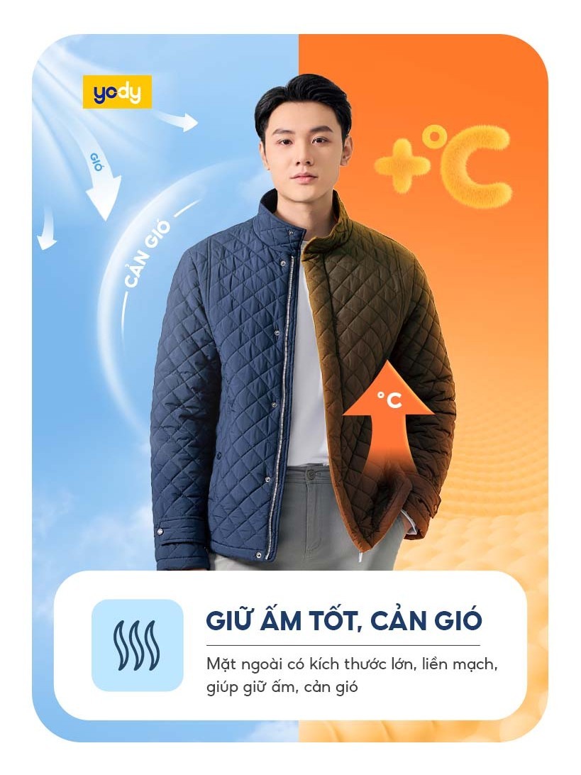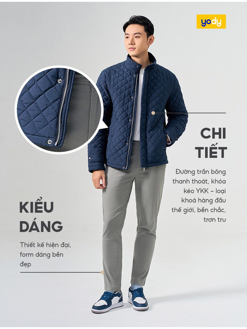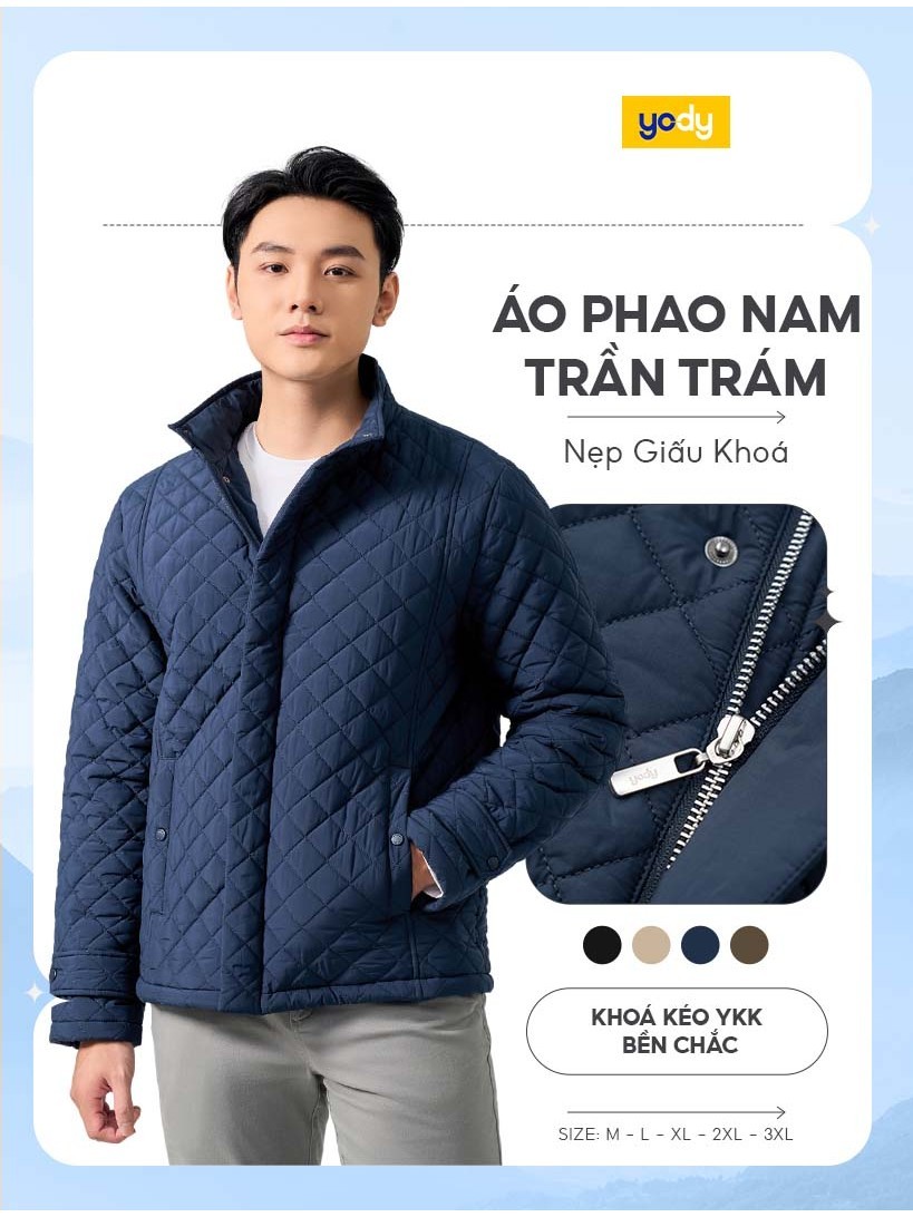Áo phao nam YODY trần trám bền, nhẹ, siêu ấm, có thể giặt máy PHM7009