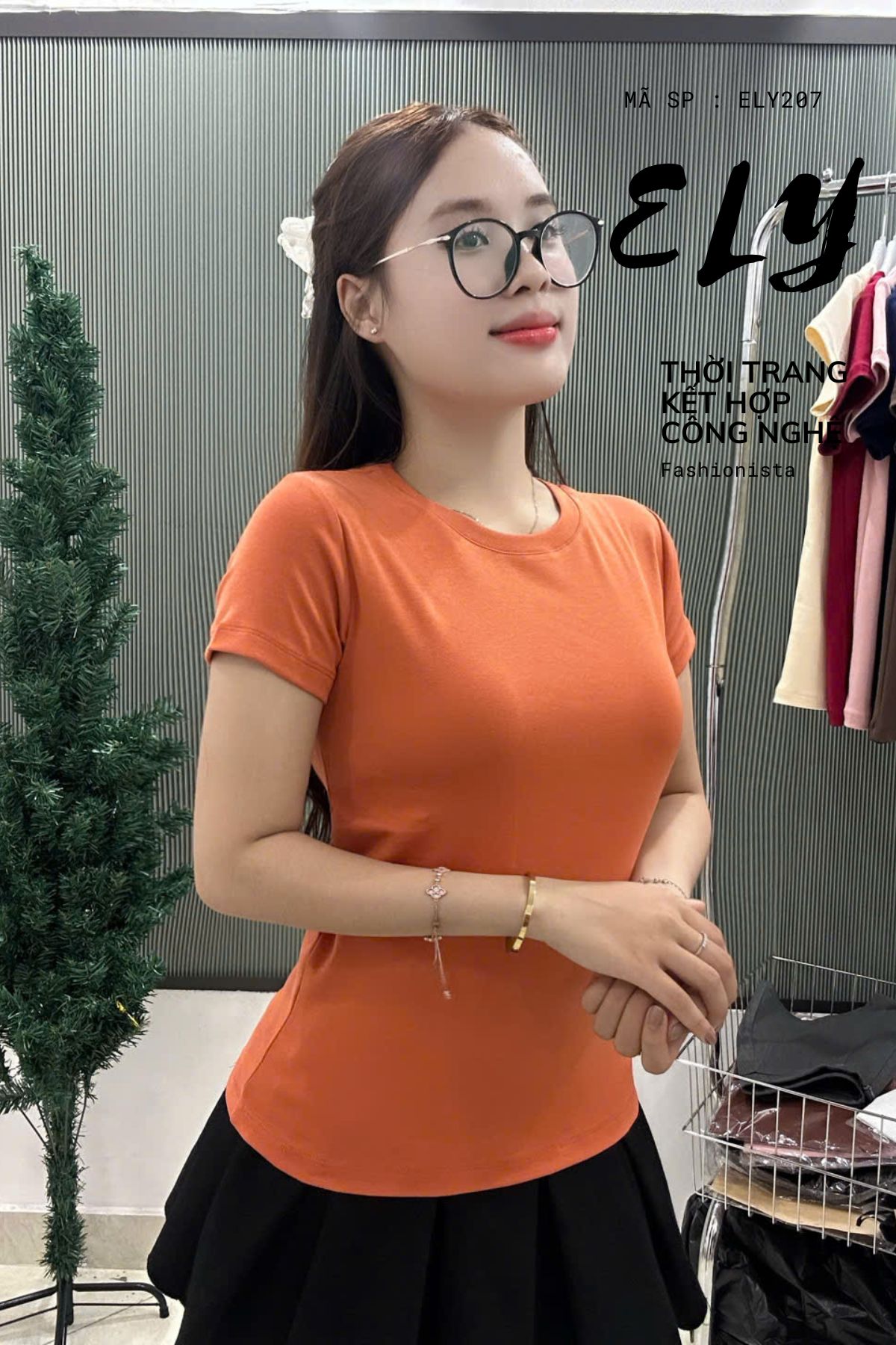 Áo phông nữ cổ tròn tay ngắn ôm body kiểu basic vải thun cotton borip cao cấp co giãn 4c không bai nhão trắng đen ELY207