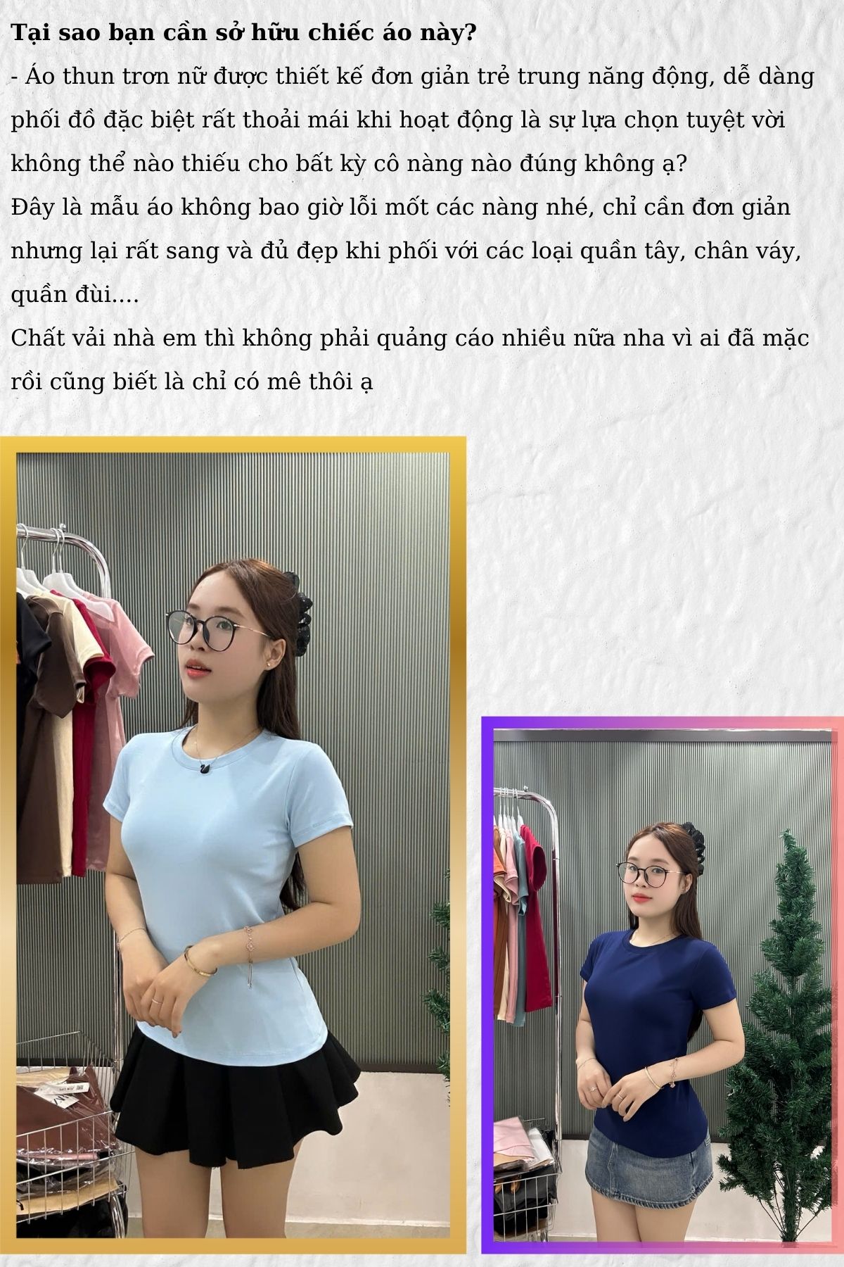 - Áo thun trơn nữ được thiết kế đơn giản trẻ trung năng động, dễ dàng phối đồ đặc biệt rất thoải mái khi hoạt động là sự lựa chọn tuyệt vời không thể nào thiếu cho bất kỳ cô nàng nào đúng không ạ?