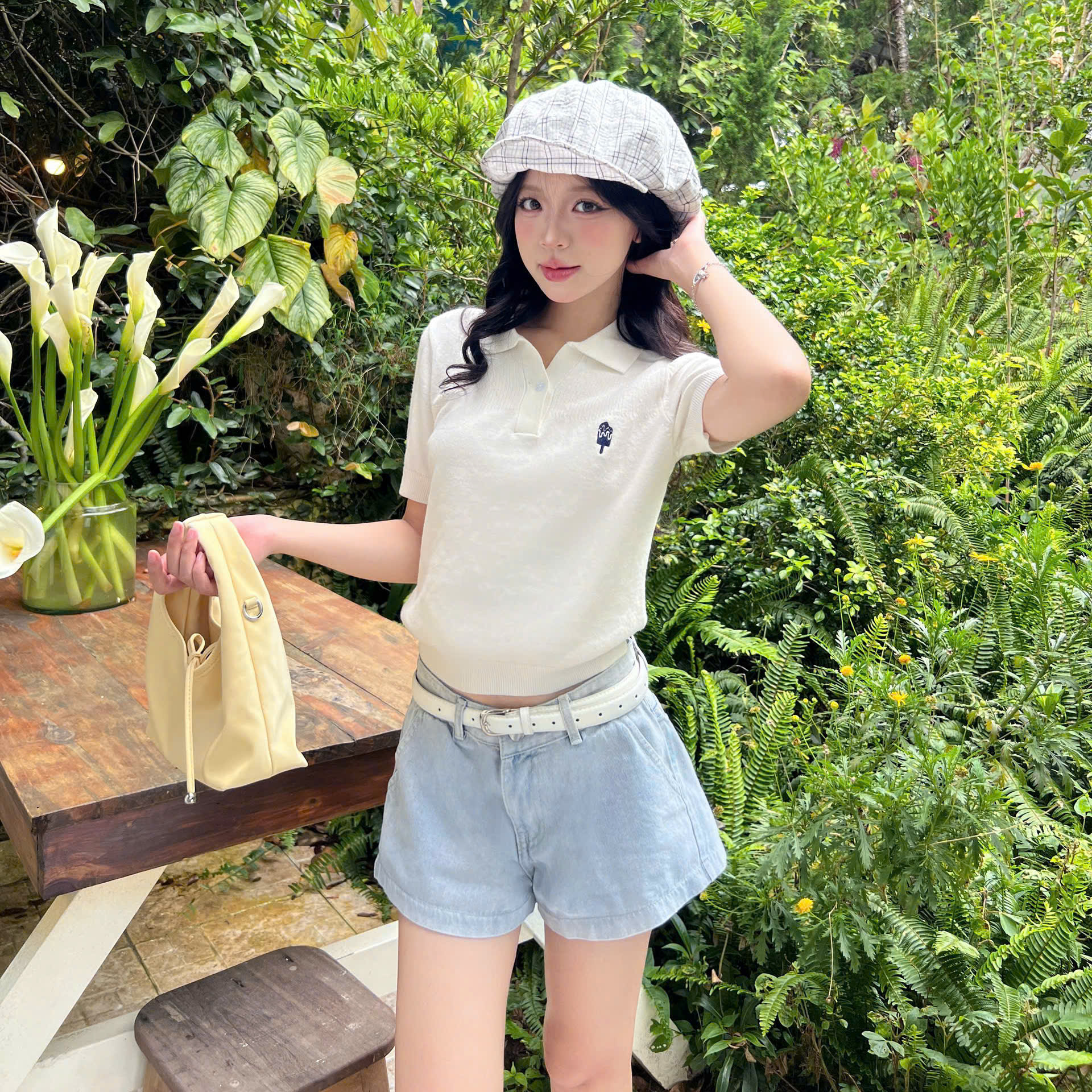 Áo Polo Dệt Kim ICEPOP Calem.Club họa tiết Thêu Mini vải trơn form nữ