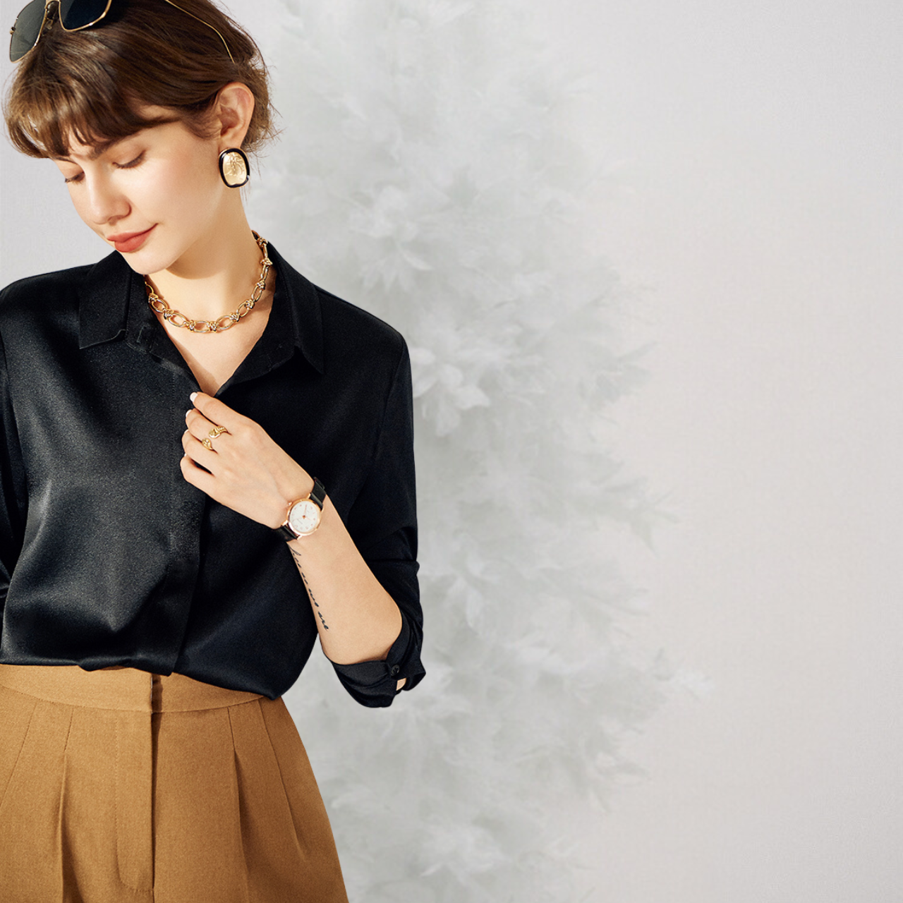 Áo sơ mi nữ dài tay lụa Qeen cao cấp vải dày mềm rủ không nhăn fom áo rộng A57