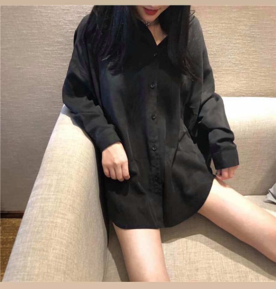 Áo sơ mi nữ đen TRẮNG dài tay basic, dáng xuông, form vừa, chất liệu mềm mịn (Phổ thông)