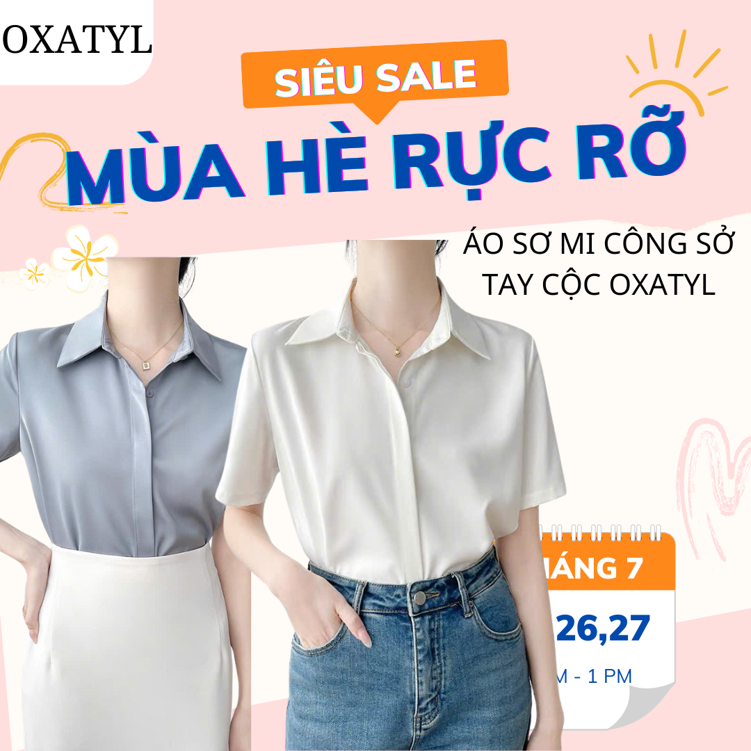Áo sơ mi nữ tay cộc OXATYL A55 chất vải lụa mềm mặc mùa hè phong cách công sở sang trọng