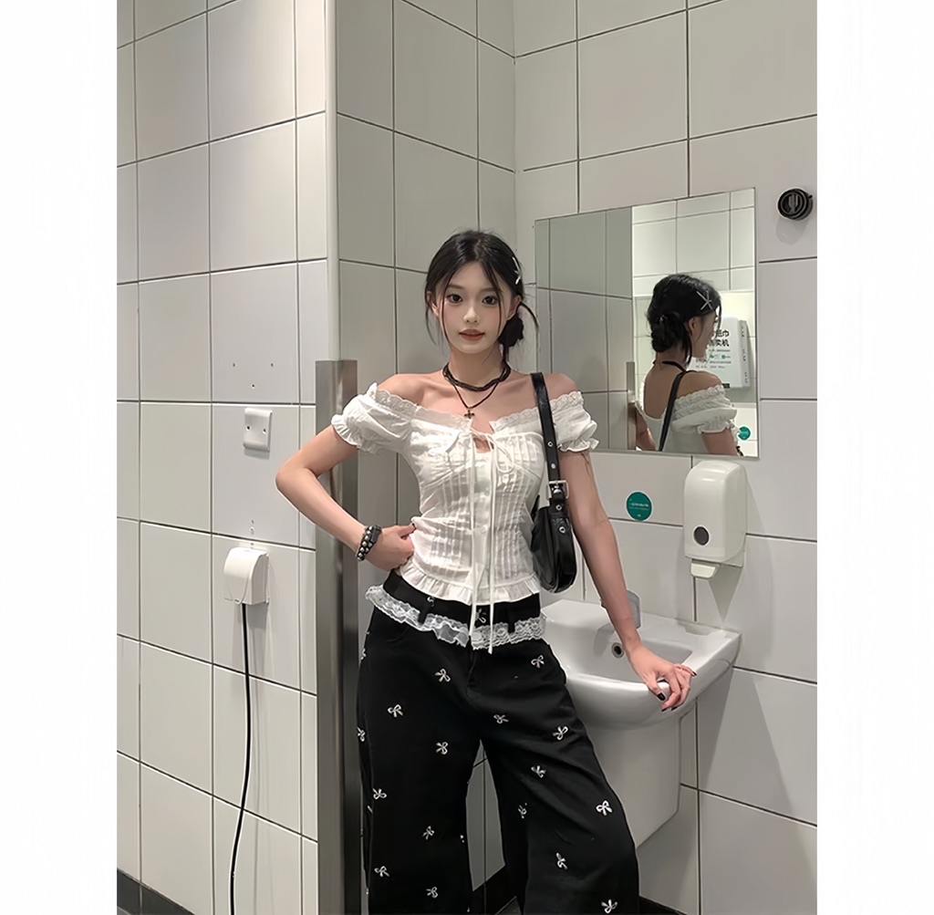 Áo Sơ Mi Trắng Tay Bồng Chít Eo Tôn Dáng, Áo Kiểu Nữ Phóo Ren Kèm Nơ Phong Cách Pháp Mặc Mùa Hè, Đi Chơi, Đi Học