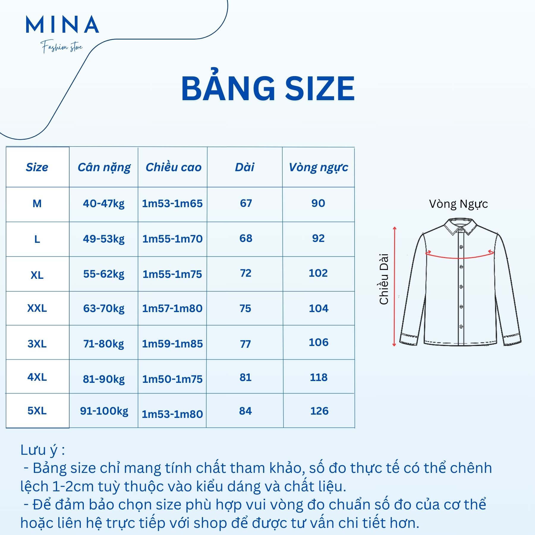 - Kích cỡ: Đầy đủ size M, L, XL, XXL, 3XL, 4XL, 5XL.