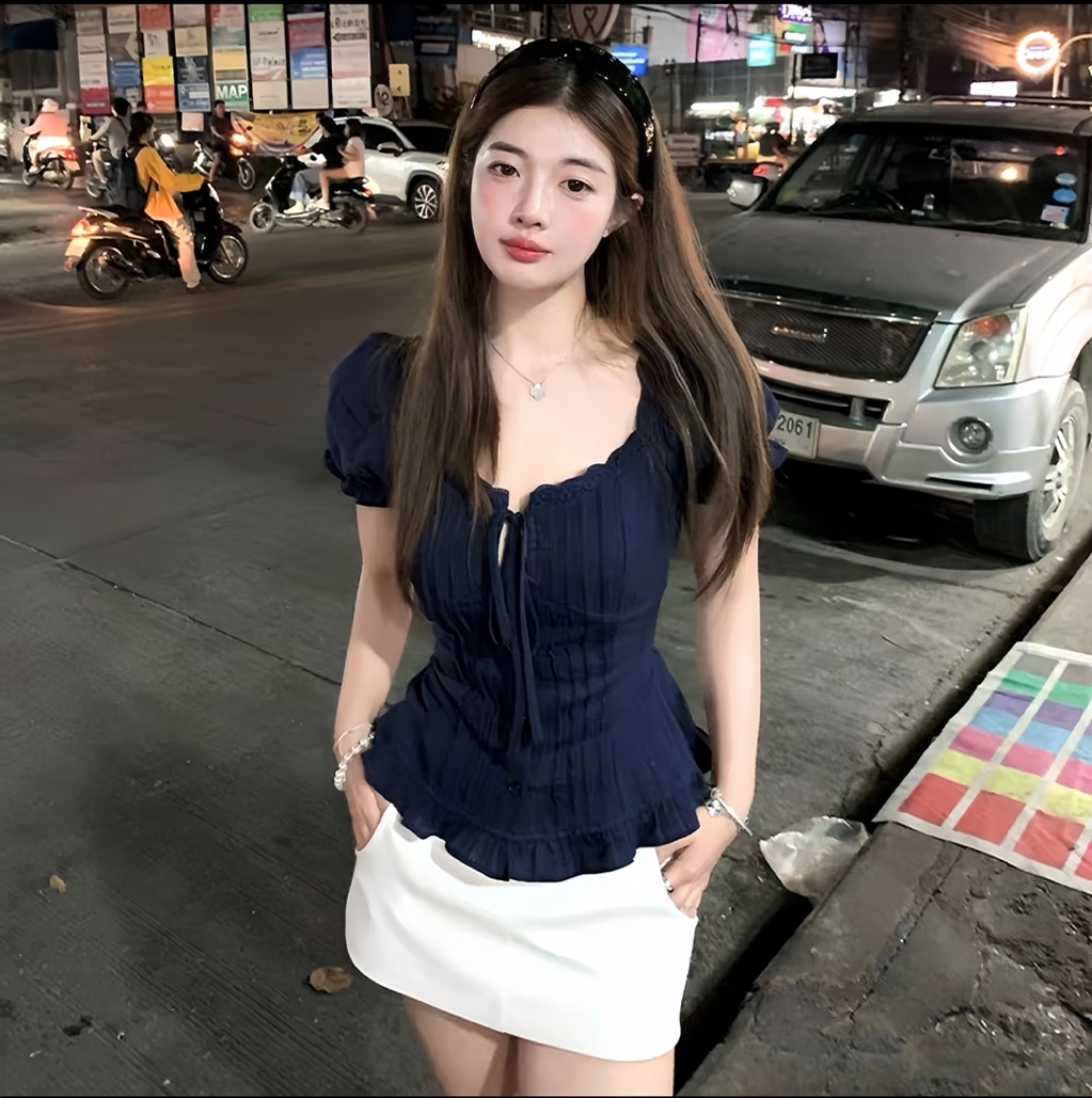 Áo Sơ Mi Xanh Than,Áo Kiểu Nữ Tôn Dáng Đi Chơi, Đi Học Dễ Phối Đồ Phong Cách Nhẹ Nhàng Nữ Tính- XM Minh Phúc