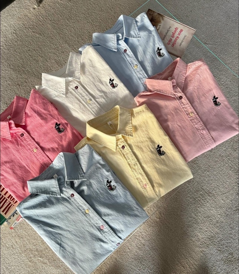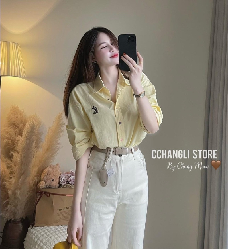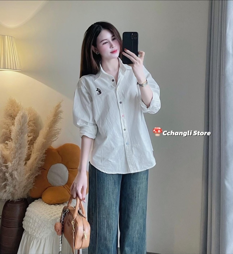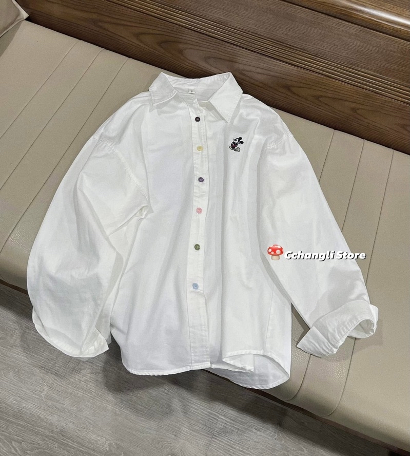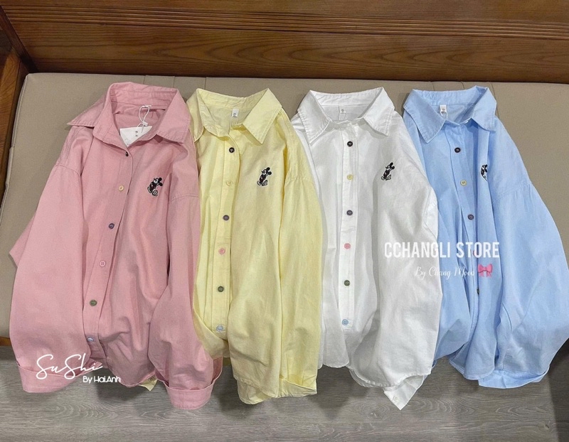 Áo Sơmi Thô Gigi.Studio Thêu MICKEY Cúc Sắc Màu hàng QC-dành cho Nữ