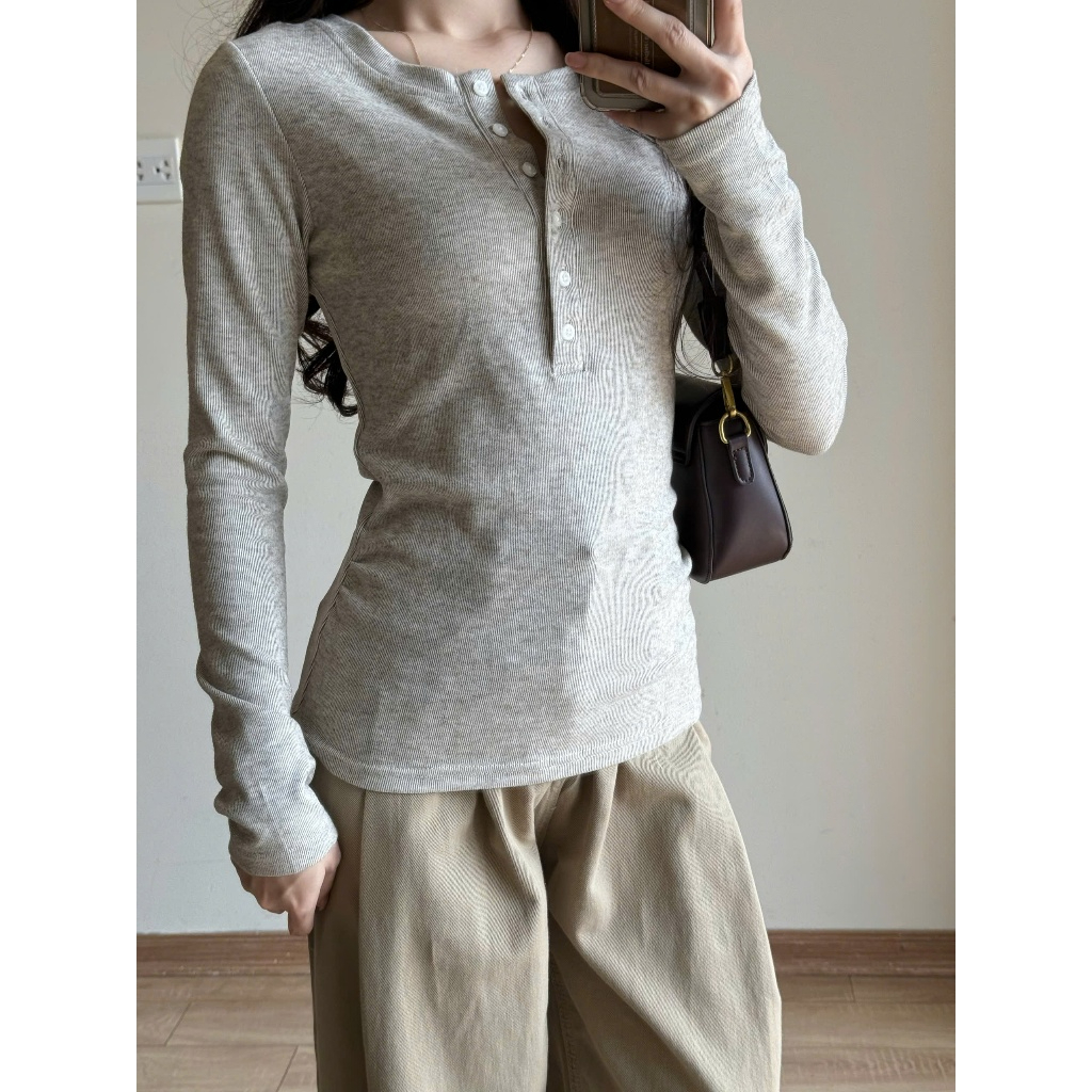 Áo thun dài tay cúc xẻ dáng ôm chất thun tăm lông thỏ mịn co giãn HA888