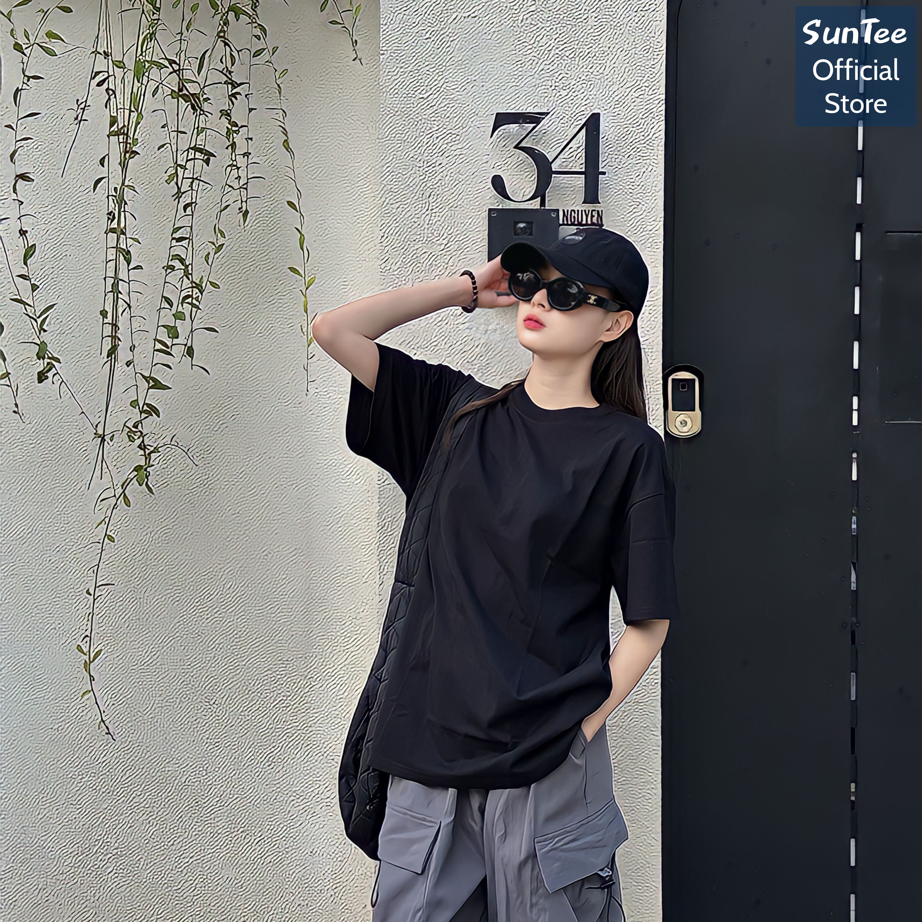 Áo thun form rộng unisex SUNTEE STFR001 phong cách basic trơn vải cotton 250GSM cao cấp thoáng mát