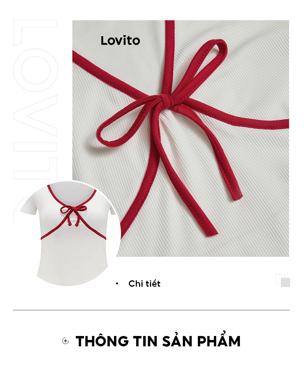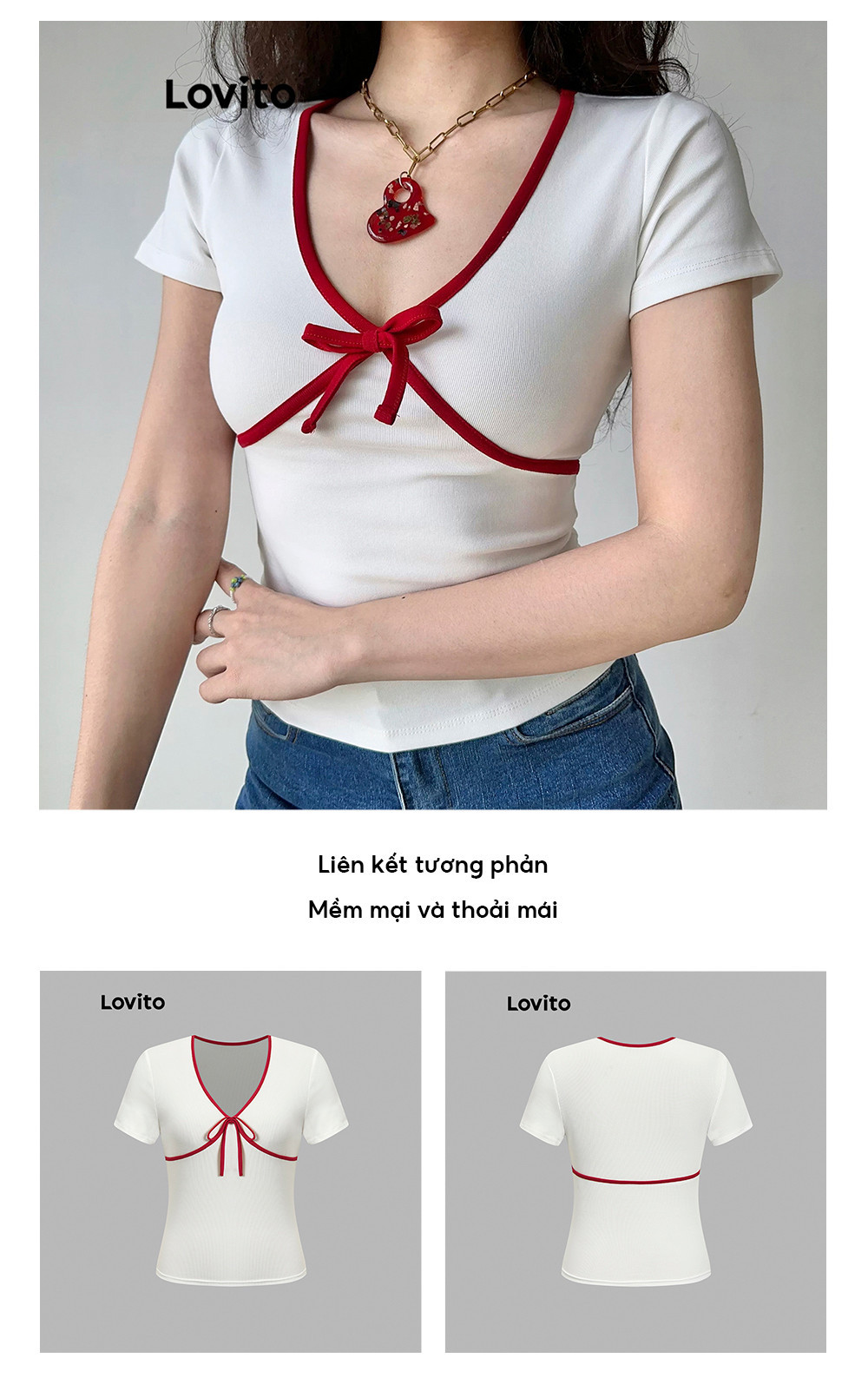 Áo thun Lovito phối viền tương phản ôm vừa phải thường ngày cho nữ L80ED119(Nhiều màu)