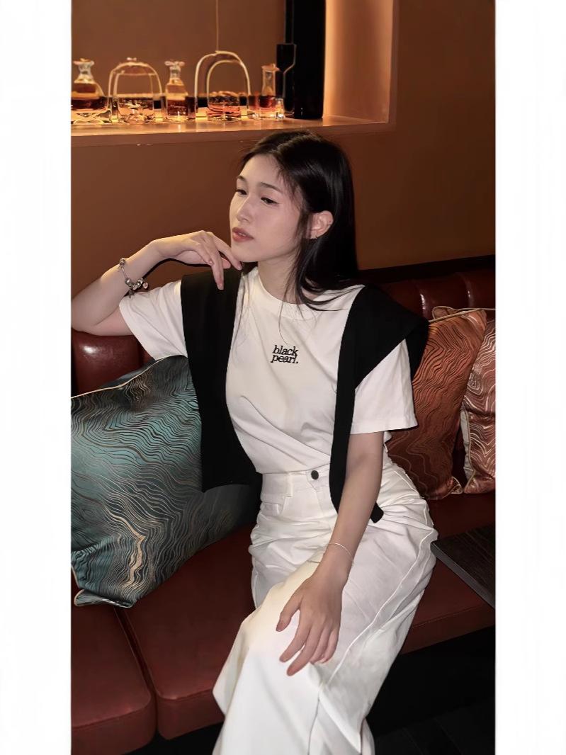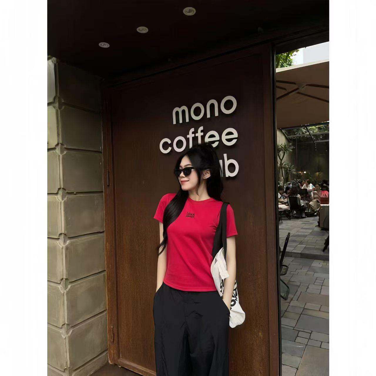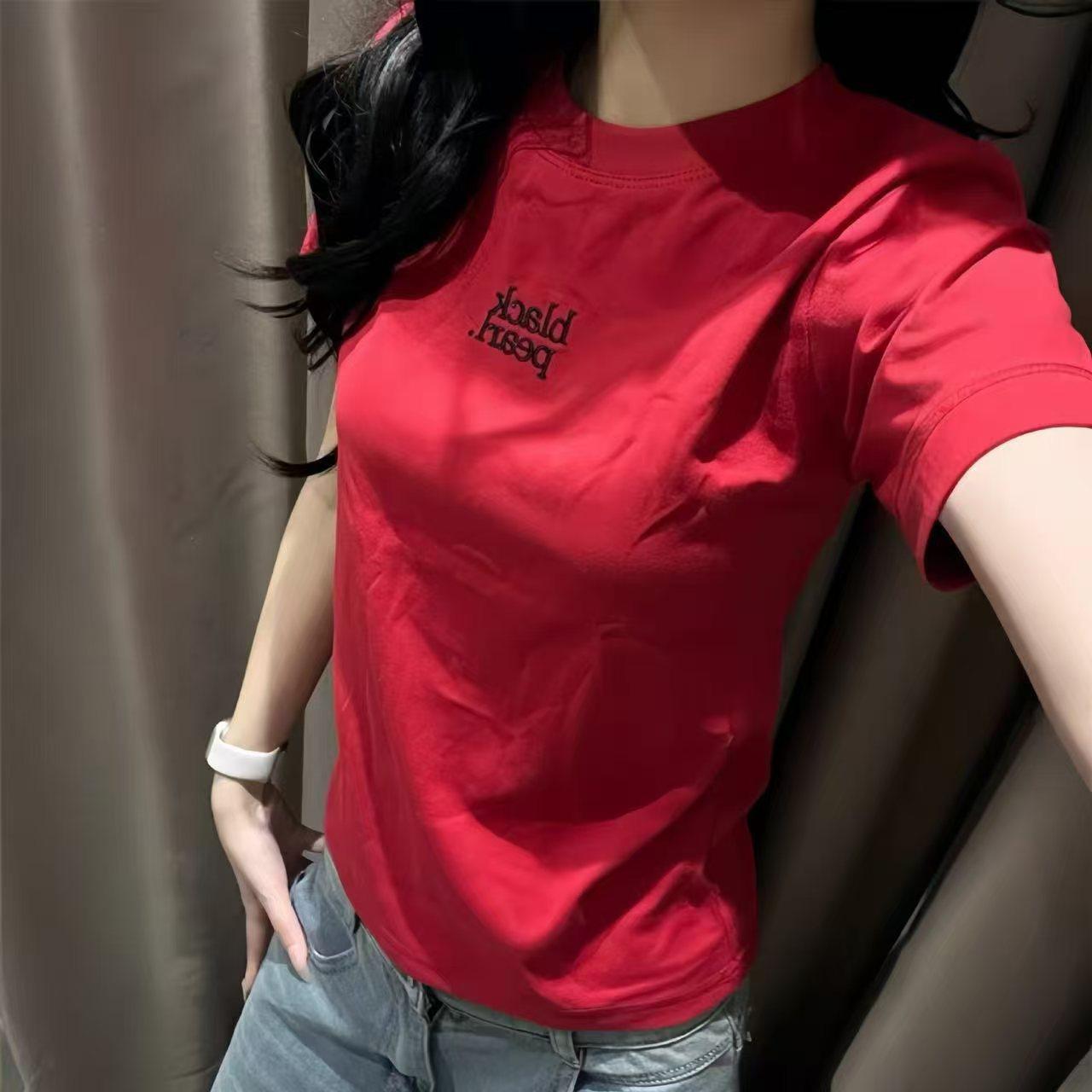 Áo Thun Ngắn Tay Thêu Chữ, Dành Cho Nữ, Dáng Ôm, Cổ Tròn, Hàng Mới Về Mùa Hè 2025, Quần Áo Hàng Đầu Cho Nữ, Thời Trang Nữ