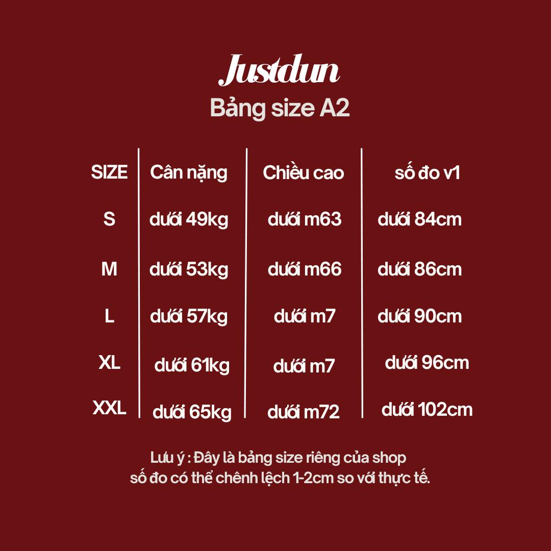 Kích cỡ: S – M – L – XL – XXL (tham khảo bảng size bên dưới).