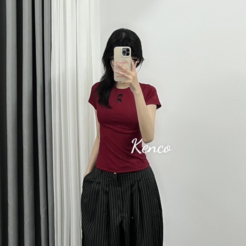 Áo thun ôm body đính nơ chất tăm thái mát mềm mịn Kenco.Sài Gòn