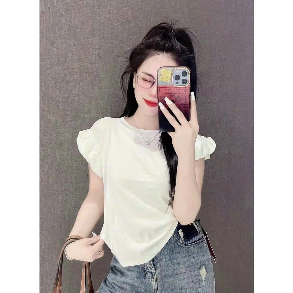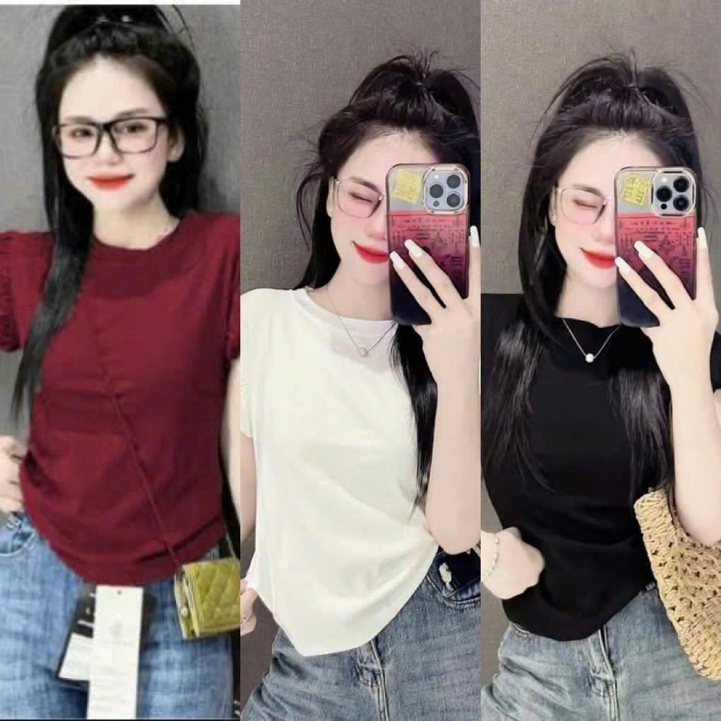 Áo thun tăm nữ tay hến mẫu mới 2025 size 38-65kg,chất thun tăm,Áo thun fom body cộc tay cho nữ