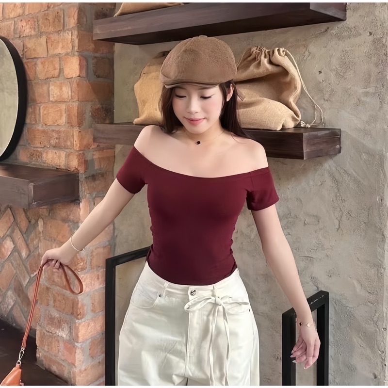 Áo Thun Tăm Trễ Vai Ôm Body Nhiều Màu