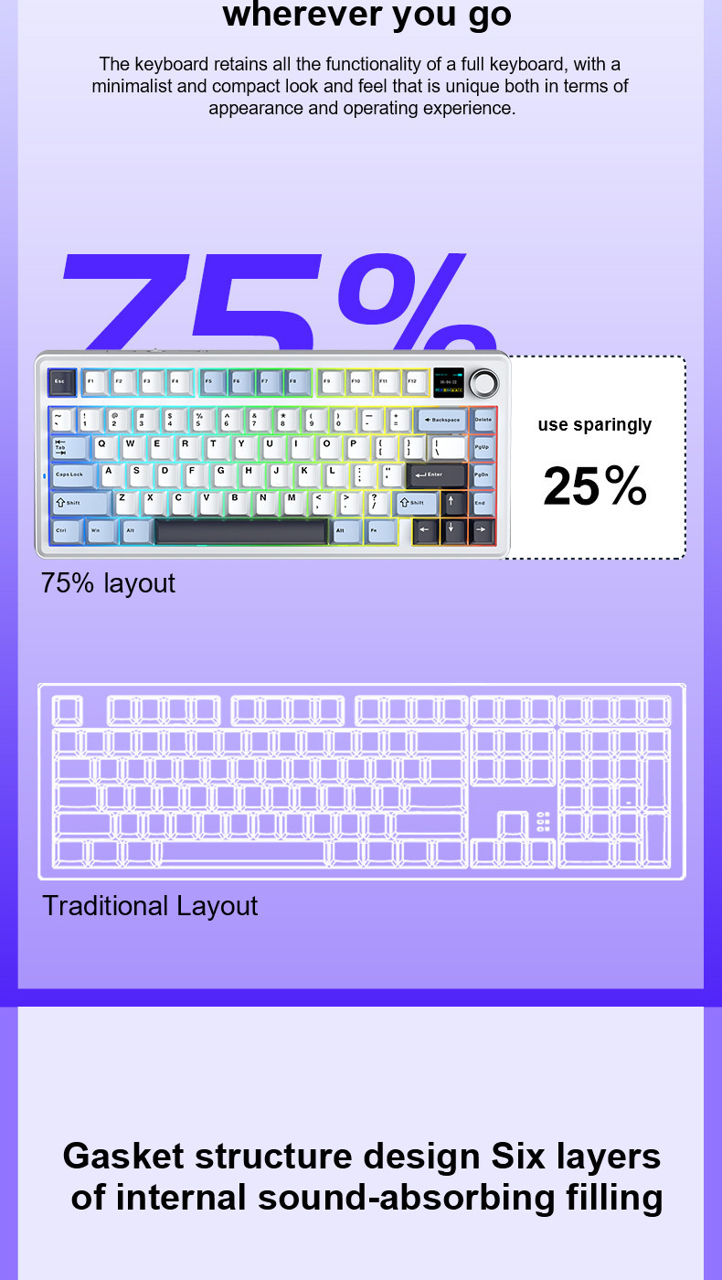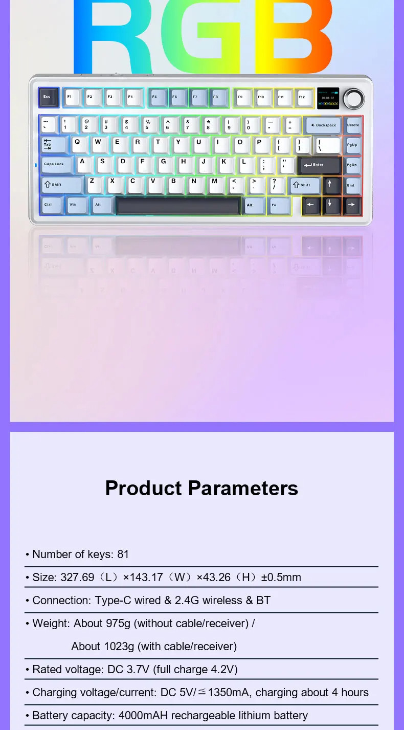 AULA F75 MAX Mechanical Keyboard 75% RGB Three Mode Wired/Bluetooth/2.4G Full Key Hot Swappable Customization E-sports Keyboard with TFT Screen for PC/Mac