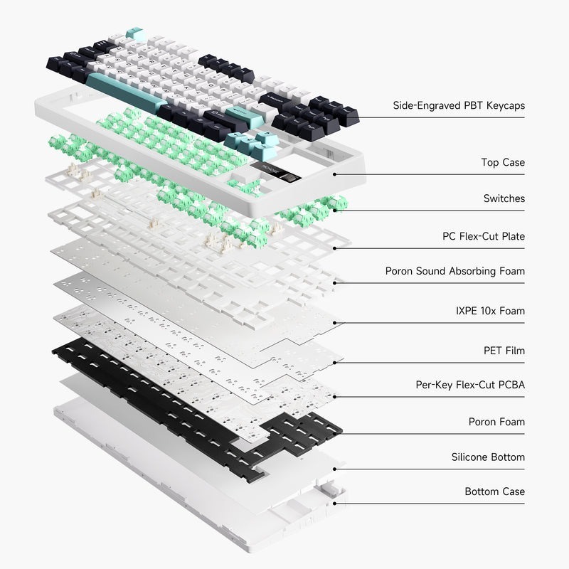 Gói hàng: 1 Bàn phím G87, 1 * Hướng dẫn sử dụng, 1 Cáp Type-C, 1 * Dụng cụ kéo, 2 Công tắc dự phòng, 1 Bìa che bụi