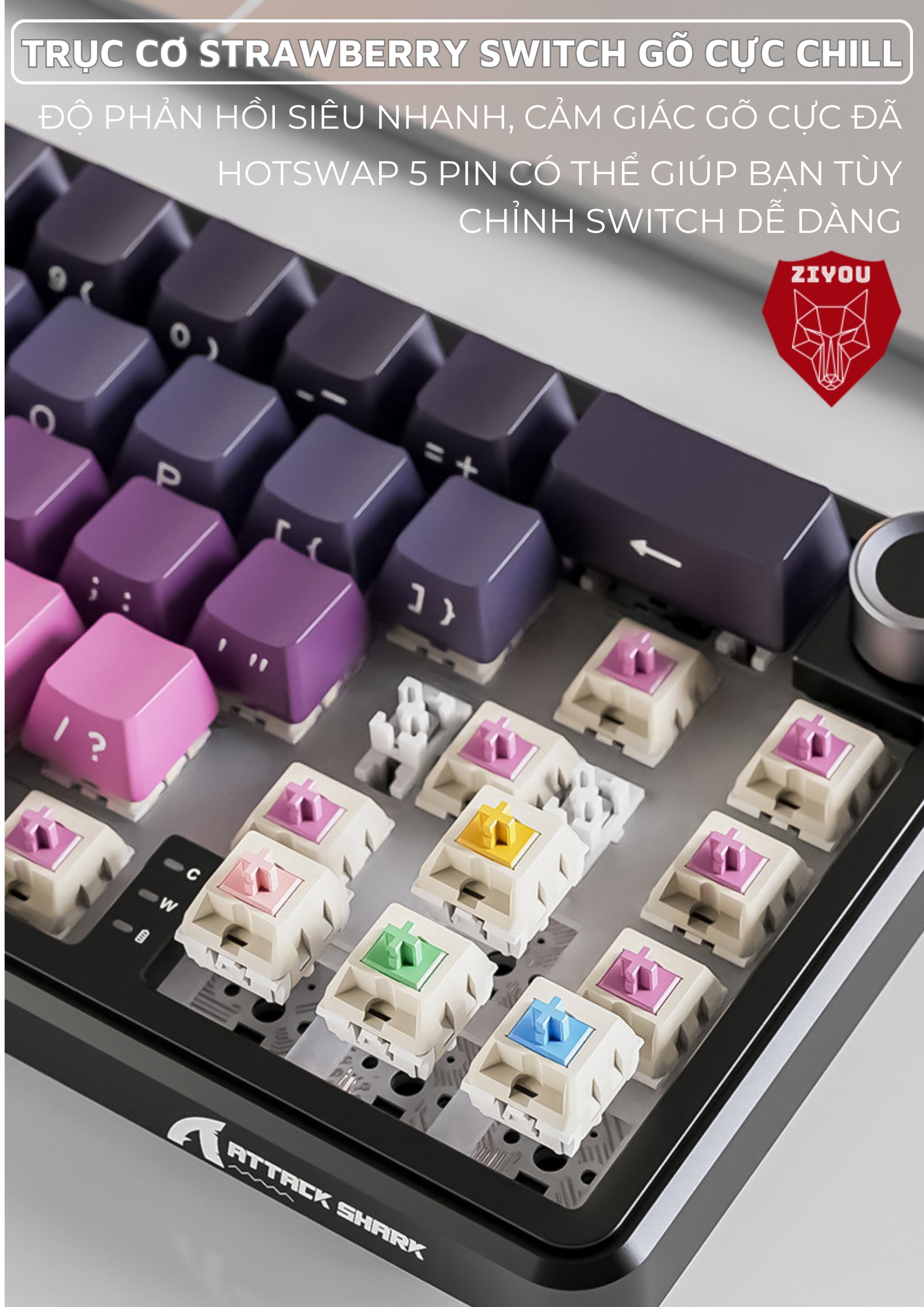 Trải nghiệm gõ phím "chill" với Strawberry Switch: êm ái, nhẹ nhàng và cực kỳ êm tai, cho bạn cảm giác thư giãn tuyệt đối khi làm việc hay giải trí.