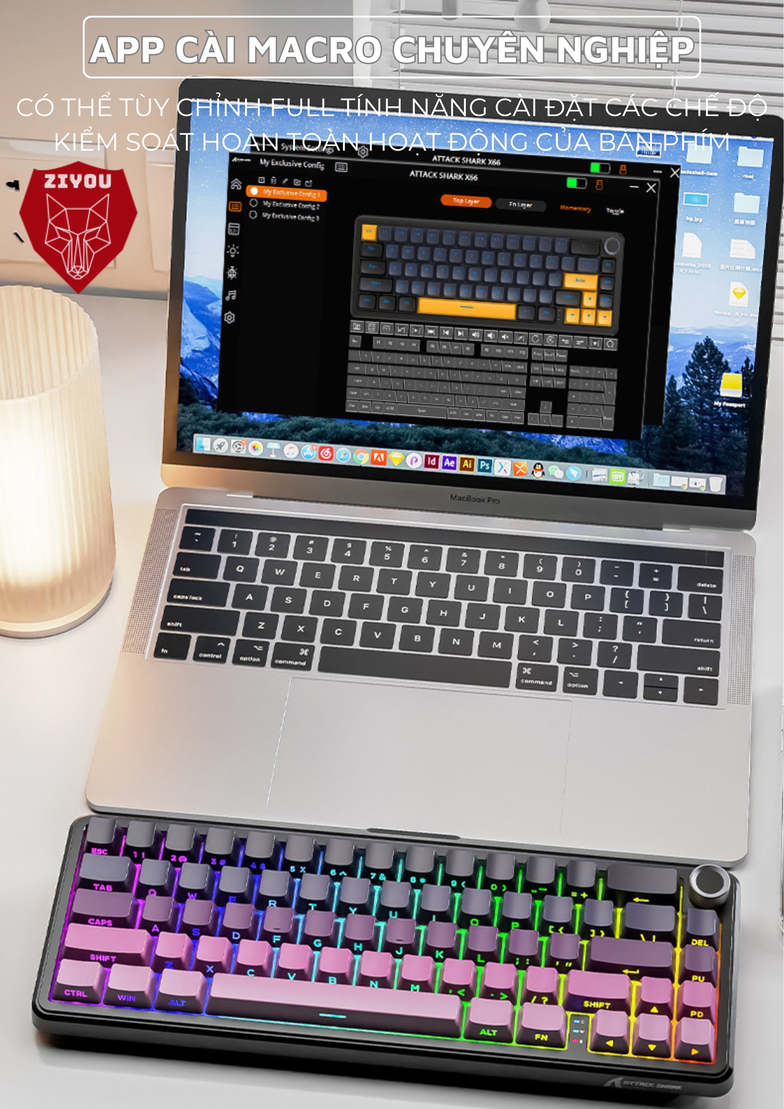 Tùy biến không giới hạn: với ứng dụng đi kèm, bạn có thể dễ dàng chỉnh macro, LED, và tùy chỉnh phím theo ý thích.