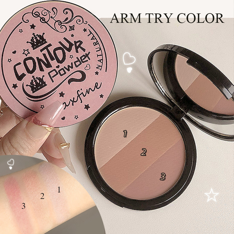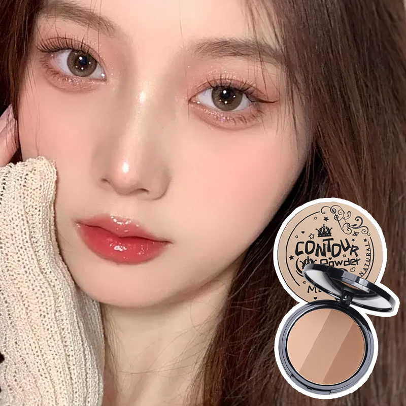 Bảng phấn Phấn má Derf 3 Màu tạo khối Tông Nhũ Và Lì Trang Điểm