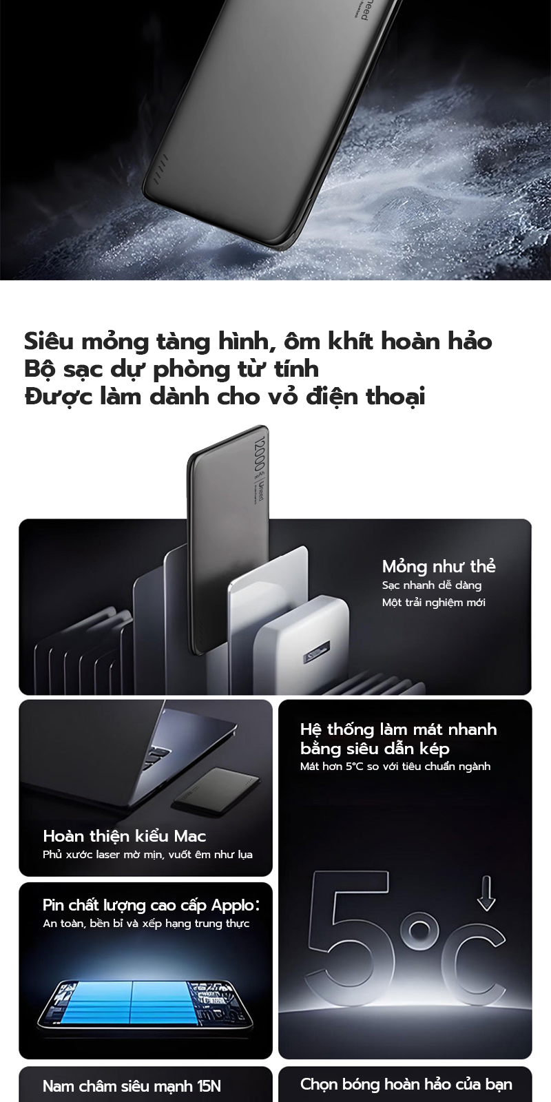 🧲 Sạc không dây từ tính: Sạc không dây 20W; chỉ cần đặt gần nam châm mạnh để sạc, ngay lập tức biến thành đế sạc từ tính ổn định.