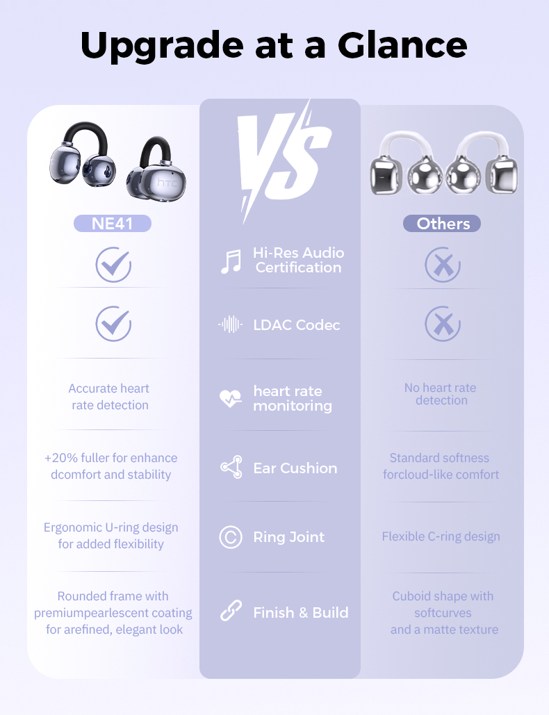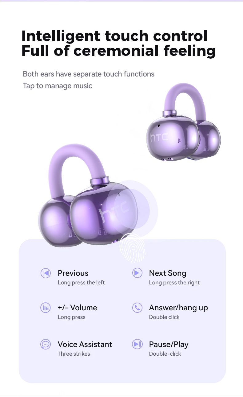 Bảo hành một năm HTC NE41 AI Dịch thuật thời gian thực Theo dõi nhịp tim Tai nghe BluetoothTWS Bluetooth 6.0 Chất lượng âm thanh HiFi IPX5 Tai nghe không dây chống nước