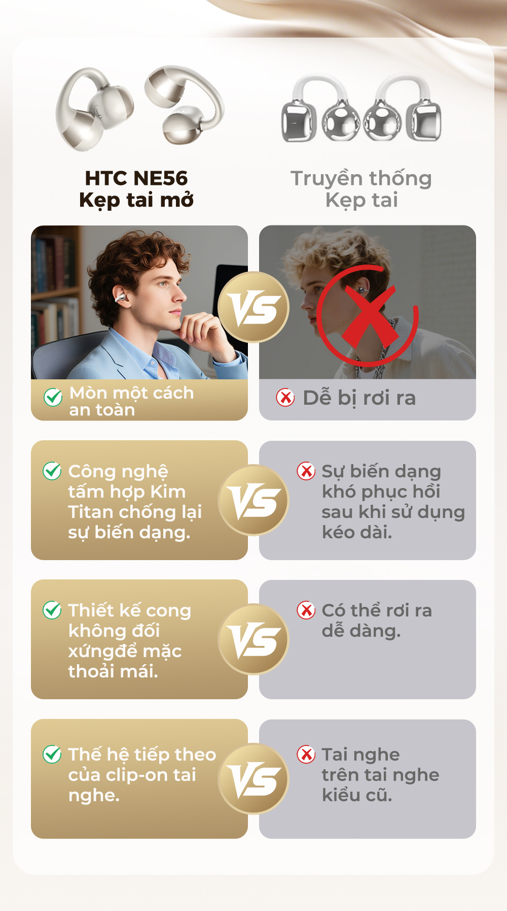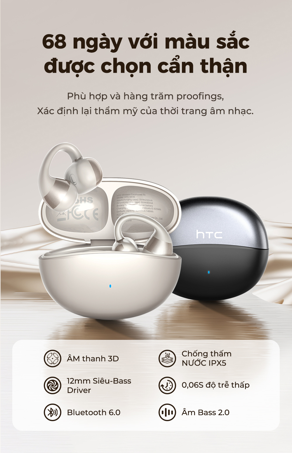Bảo hành một năm HTC NE56 AI Dịch thuật thời gian thực Tai nghe BluetoothTWS Bluetooth 6.0 Chất lượng âm thanh HiFi IPX5 Tai nghe không dây chống nước