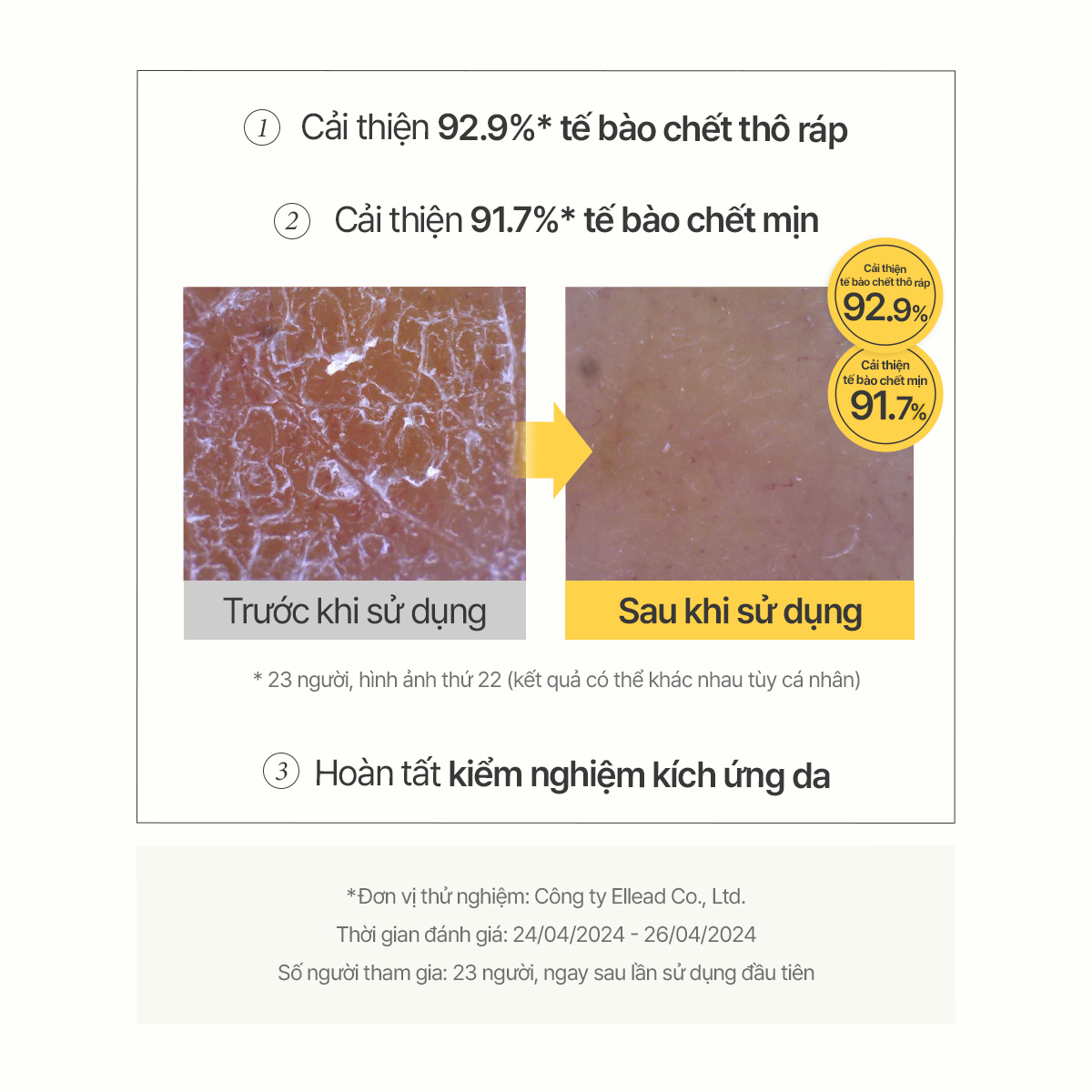 - Giảm sừng dày >90%