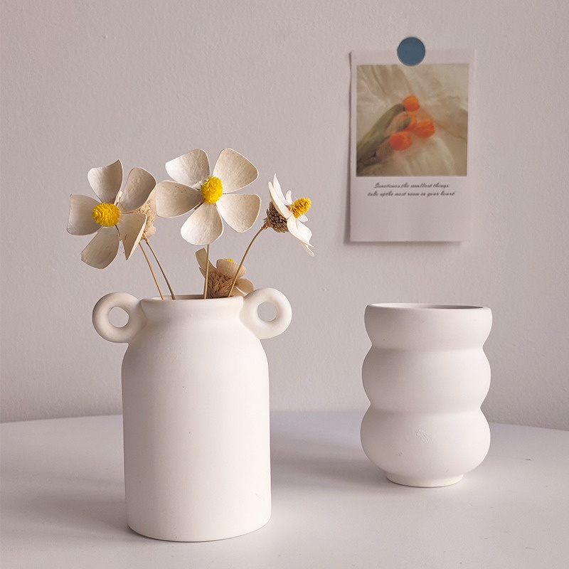 Bình Hoa Sứ Trắng Để Bàn Trang Trí Phòng Khách Đơn Giản Hiện Đại