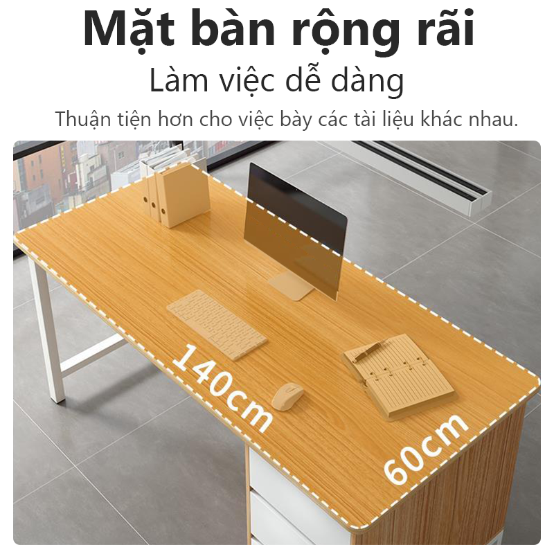 Bmzar Bàn máy tính Dày 140/120/100cm có ngăn kéo bàn máy tính chân thép Không gian lưu trữ lớn Có thể hỗ trợ trọng lượng