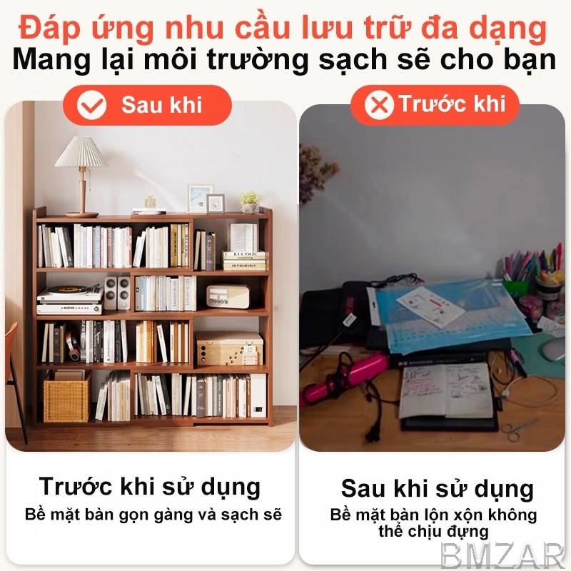 BMZAR Kệ Sách gỗ để bàn Tự do điều chỉnh dài ngắn tiện lợi dễ dàng sử dụng Để 3 màu