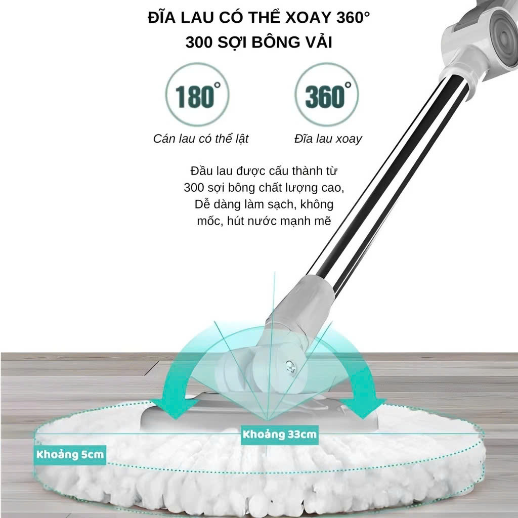- Bàn lau lớn xoay 360 độ, lau sạch mọi ngóc ngách