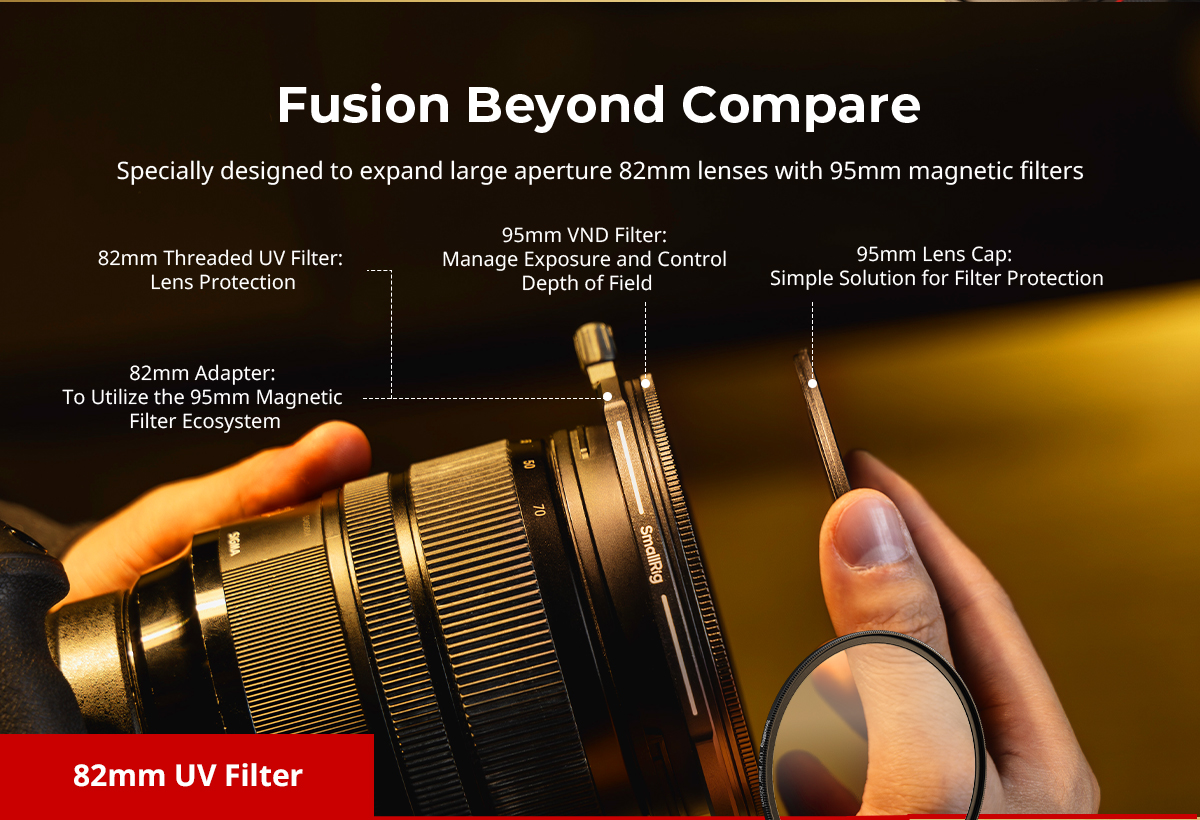Bộ lọc có cơ chế nhả nhanh từ tính, cho phép gắn liền mạch và an toàn vào bộ lọc UV, đồng thời cho phép gắn từ tính cho các bộ lọc khác nhau.