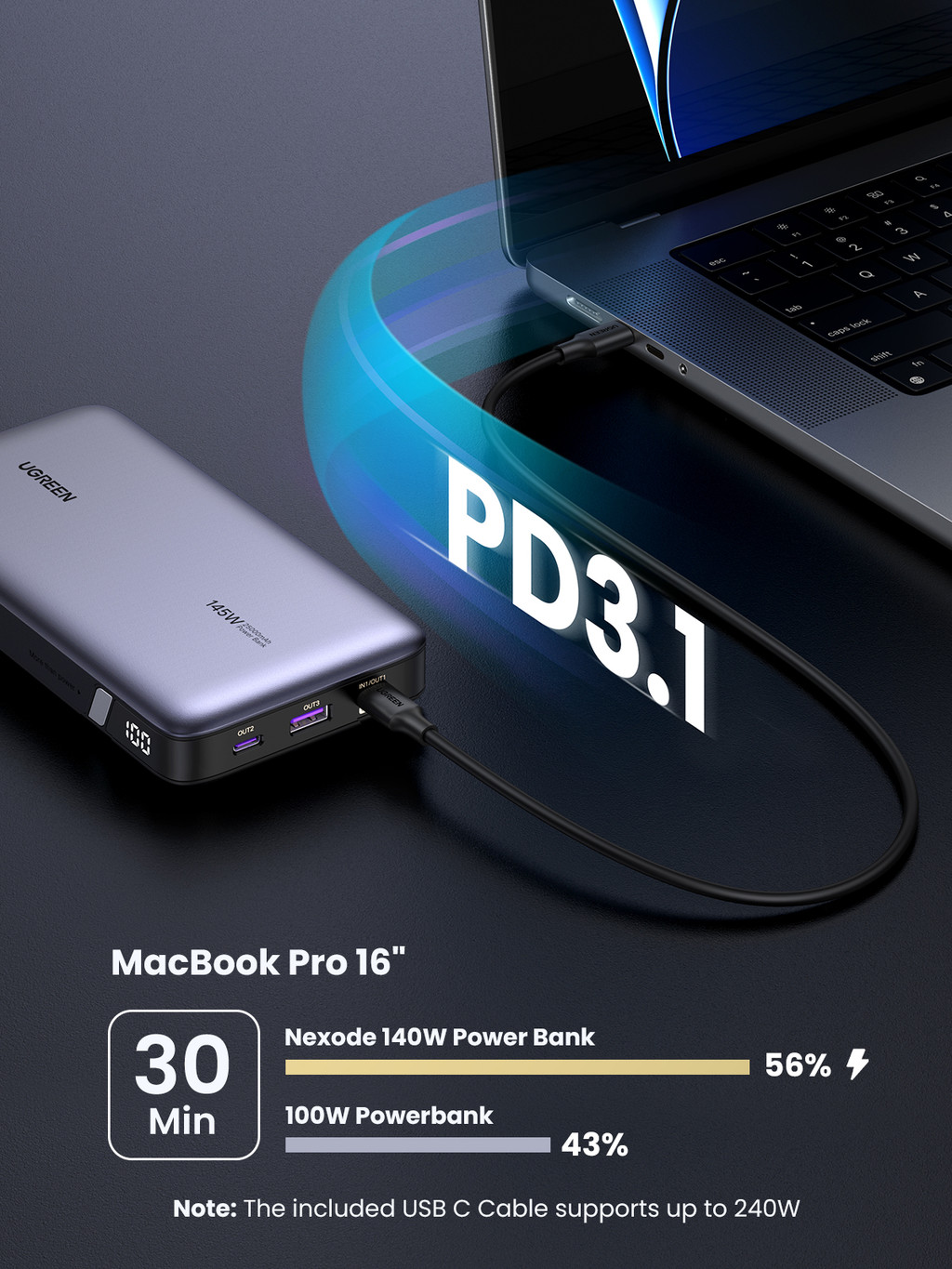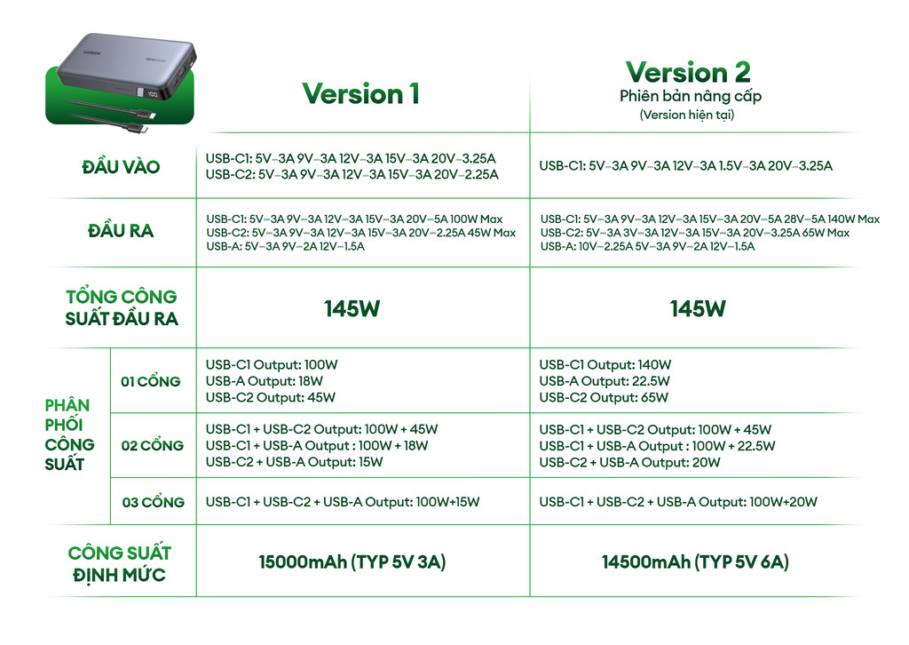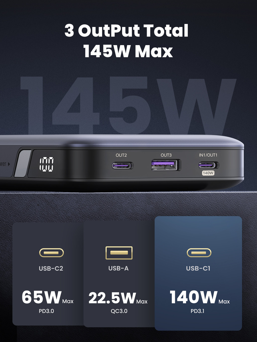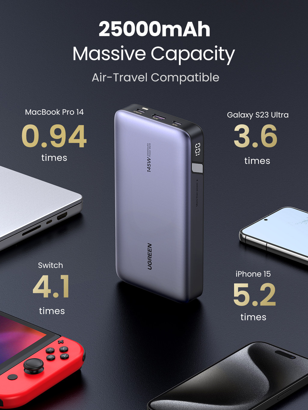 Bộ pin sạc dự phòng 25000mAh/20000mAh 145W/100W UGREEN | Cổng sạc nhanh USB-C | 3 cổng | BH 18 tháng 1 đổi 1 90597A