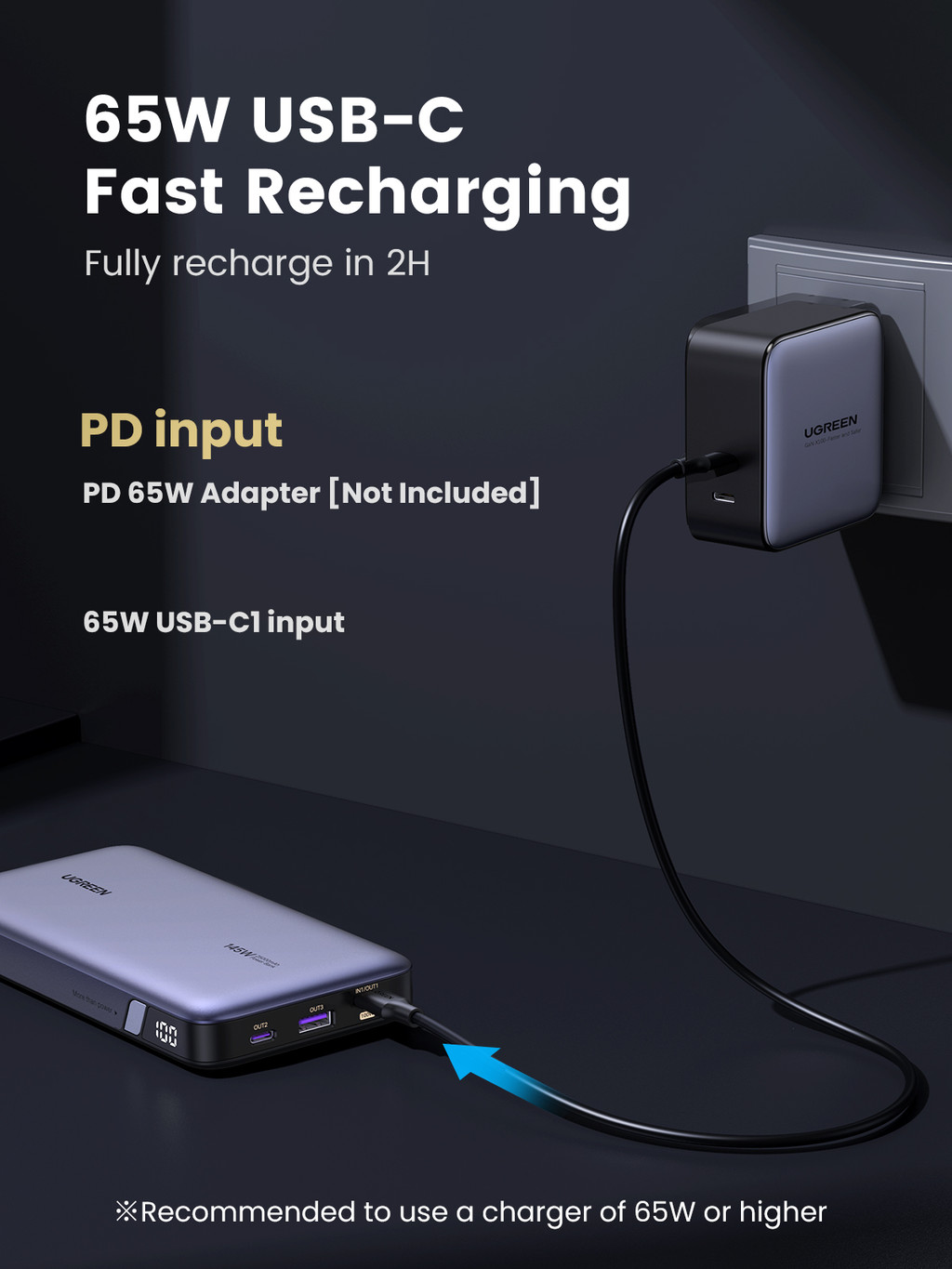 + Dễ dàng sạc lại pin dự phòng 25.000mAh trong 2 giờ bằng bộ sạc PD 65W