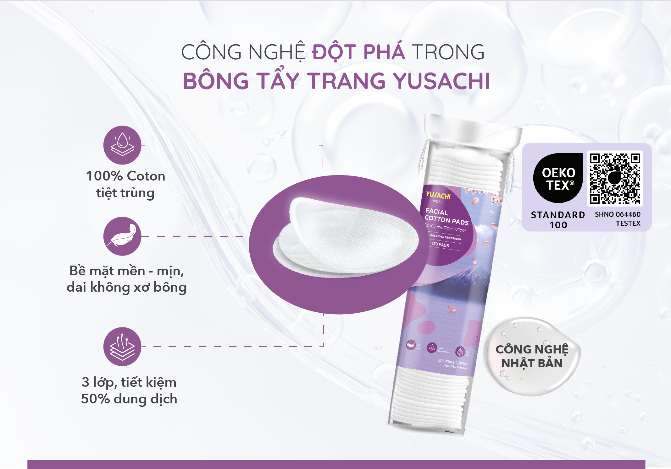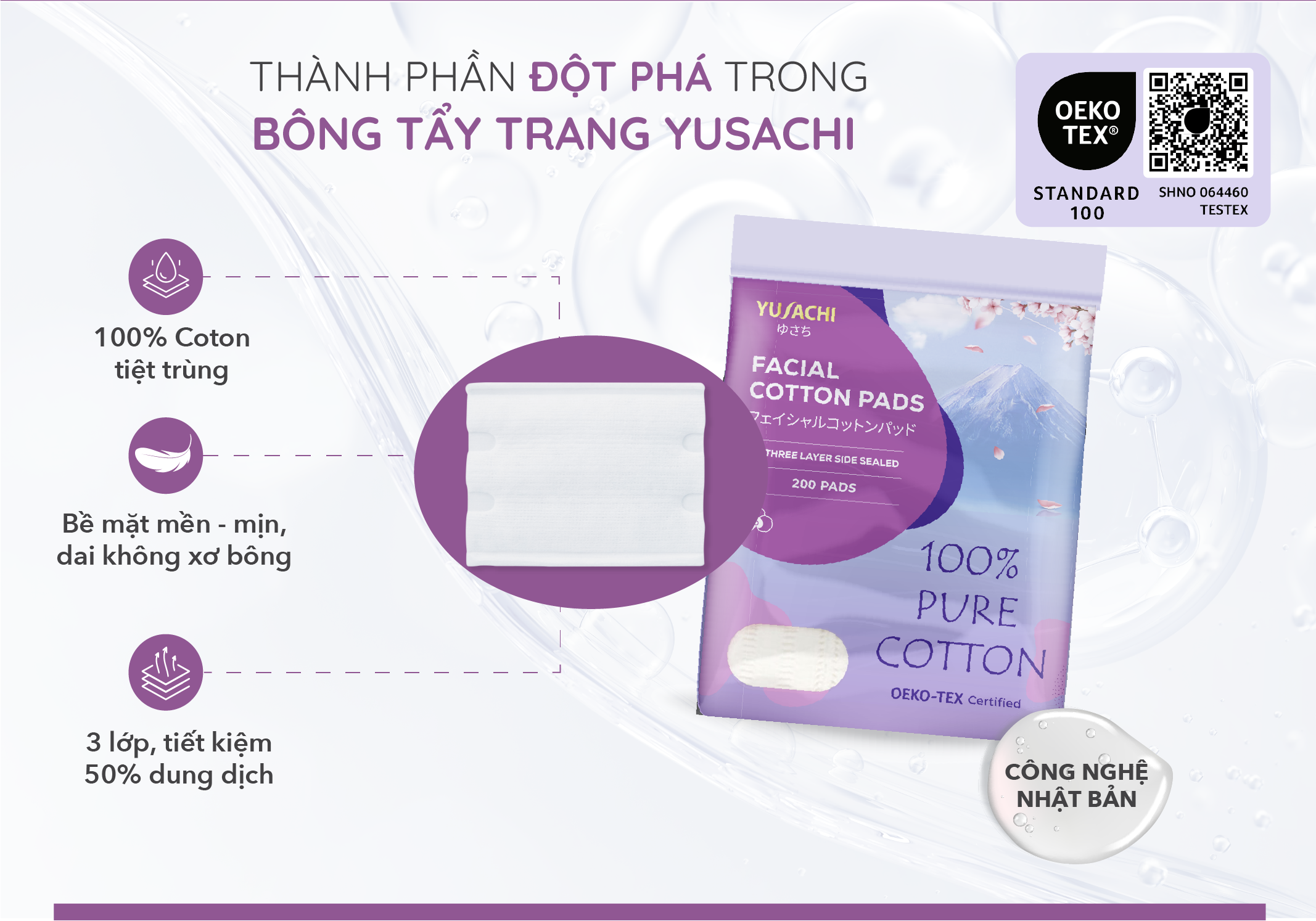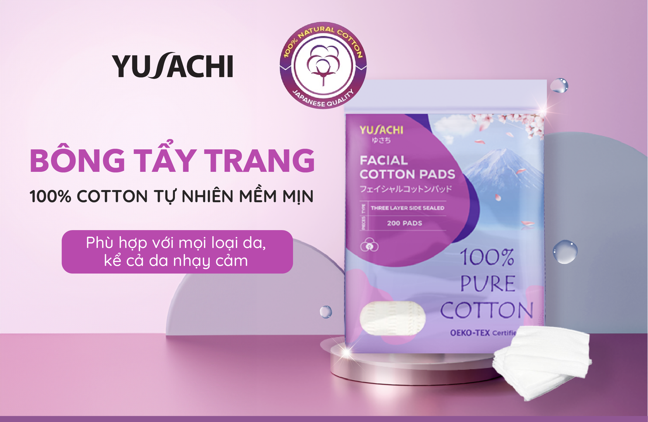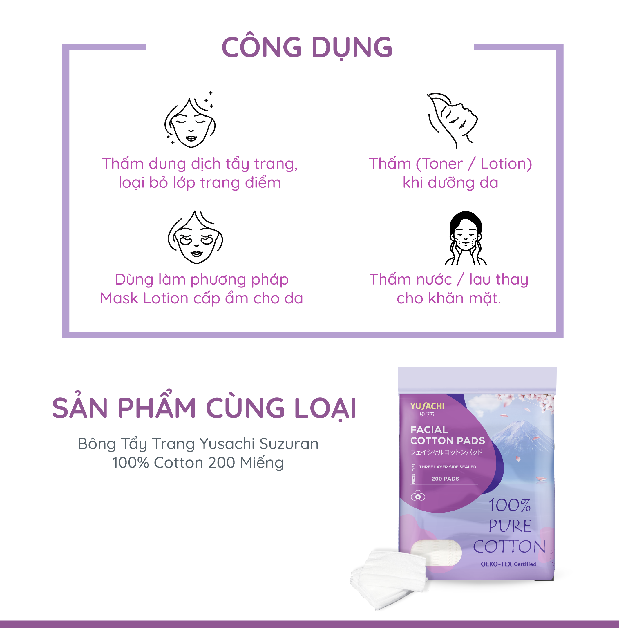 Bông tẩy trang chất lượng Nhật Bản Yusachi 100% cotton chứng nhận Oeko Tex
