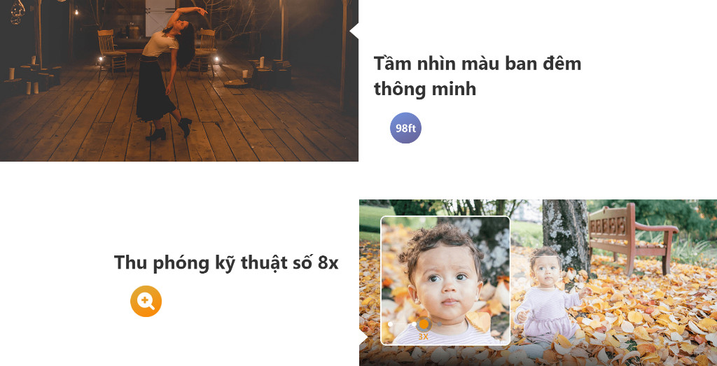 Tính năng thông minh: phát hiện con người, phát hiện chuyển động, chọn vùng cảnh báo